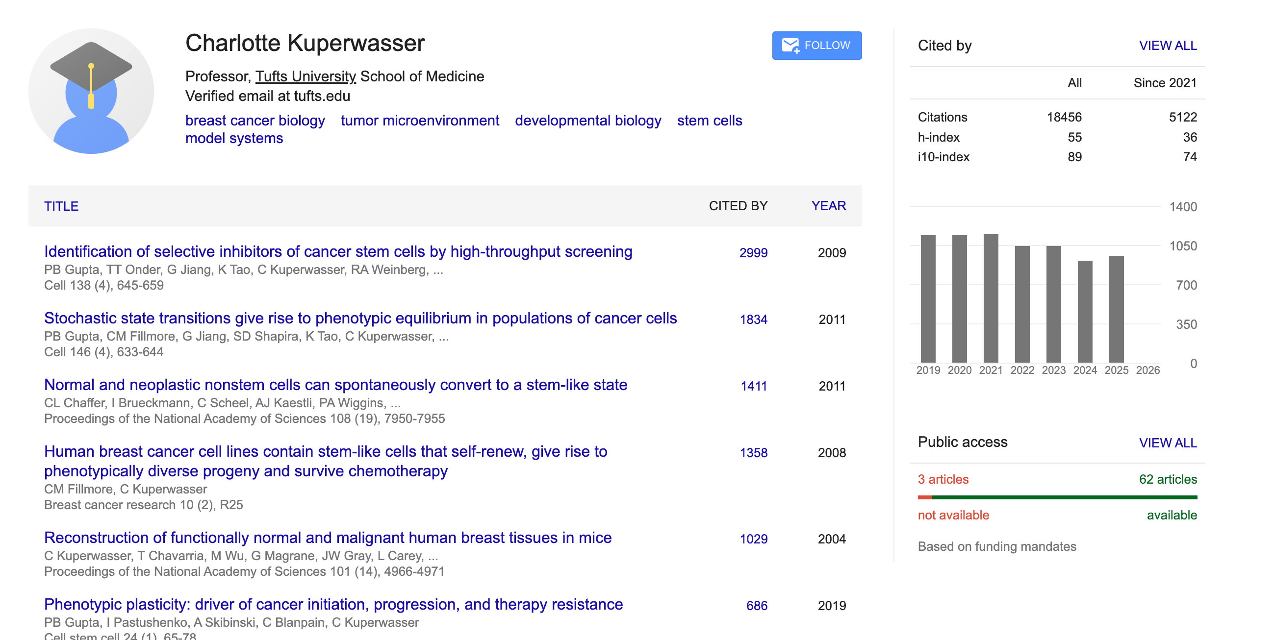 These papers are from some heavy hitters. Charlotte Kuperwasser and Wafik El-Deiry are both on the ACIP committee. Both well cited with high h-index publication careers. Charlotte is a Professor Developmental, Molecular and Chemical Biology at Tufts University School of Medicine and Tufts is no genomics slouch. Illumina was founded out of Tufts from David Walts lab. Charlotte is a tissue engineering specialist exploring human organoids to better understand Breast cancer.