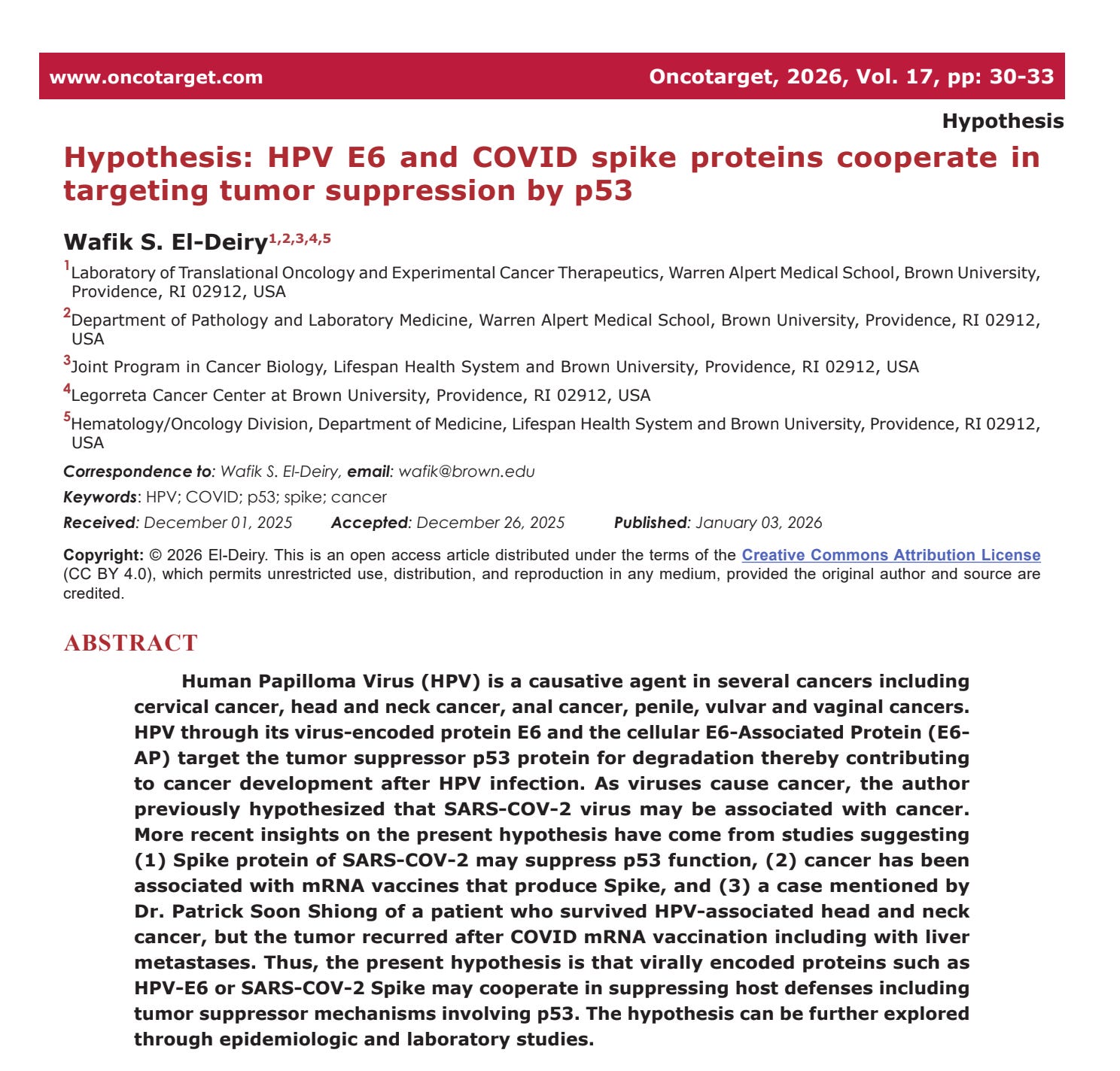 Why This Matters: This directly challenges the narrative that COVID vaccines are safe for cancer patients. You’re proposing a mechanistic pathway where vaccine-induced Spike could reactivate latent cancers.