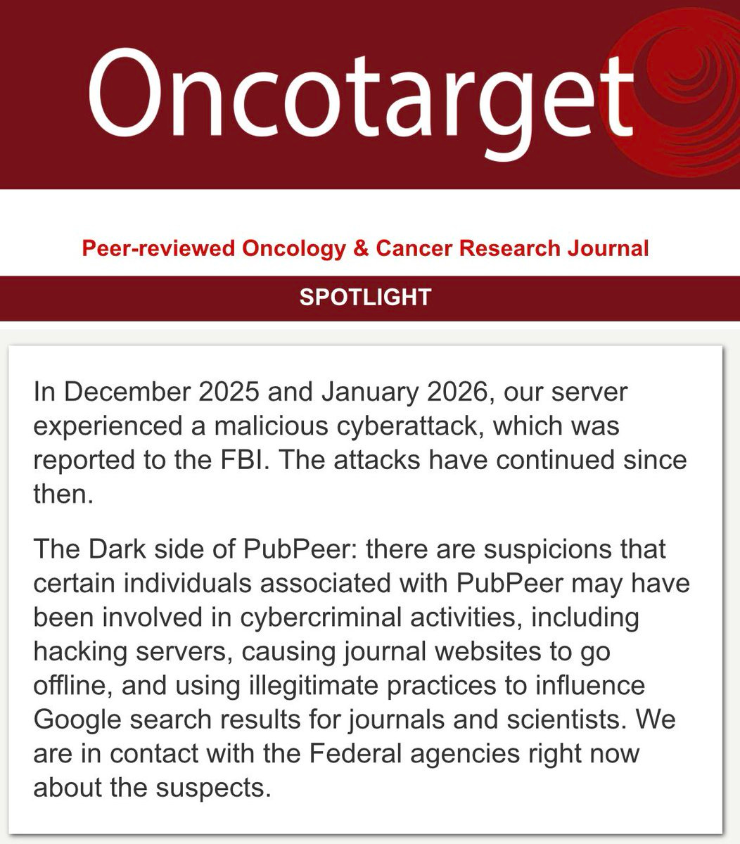 Oncotarget announces ongoing cyberattacks and FBI investigation