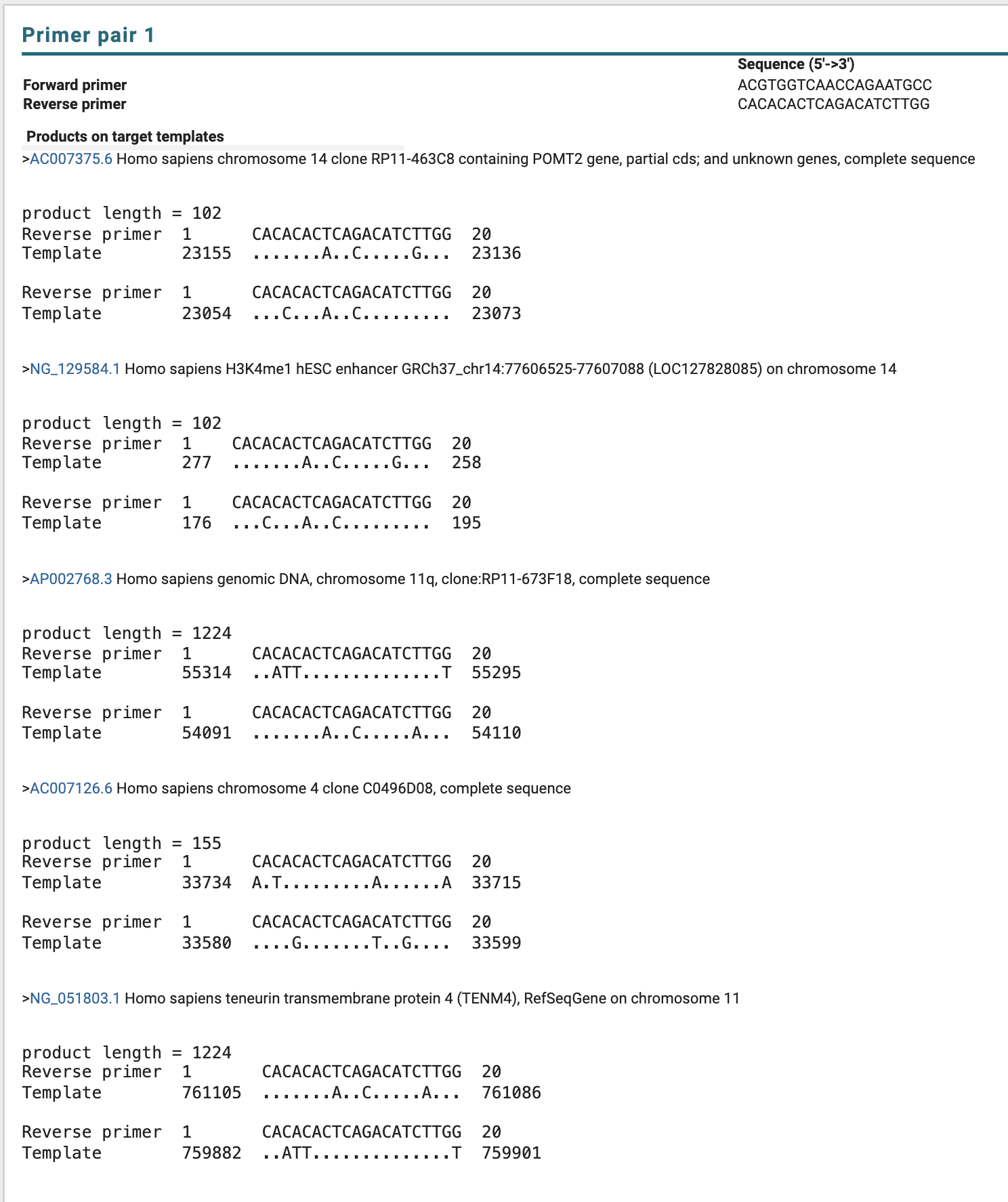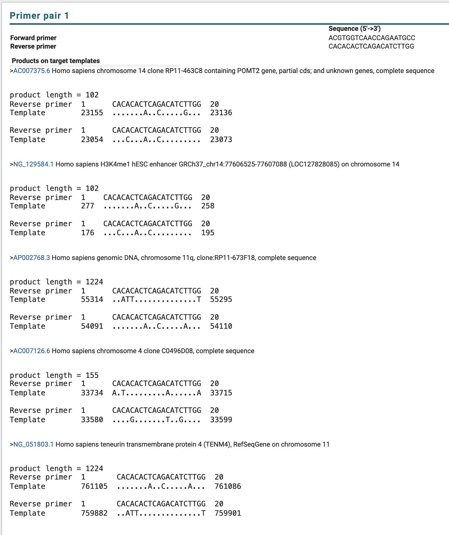 5)Perhaps supplement disclosure of the NCBI Primer-BLAST hits for the primers. I’ve run all 6 through and they don’t look as bad as what might occur when someone just single primer BLASTs these primers.