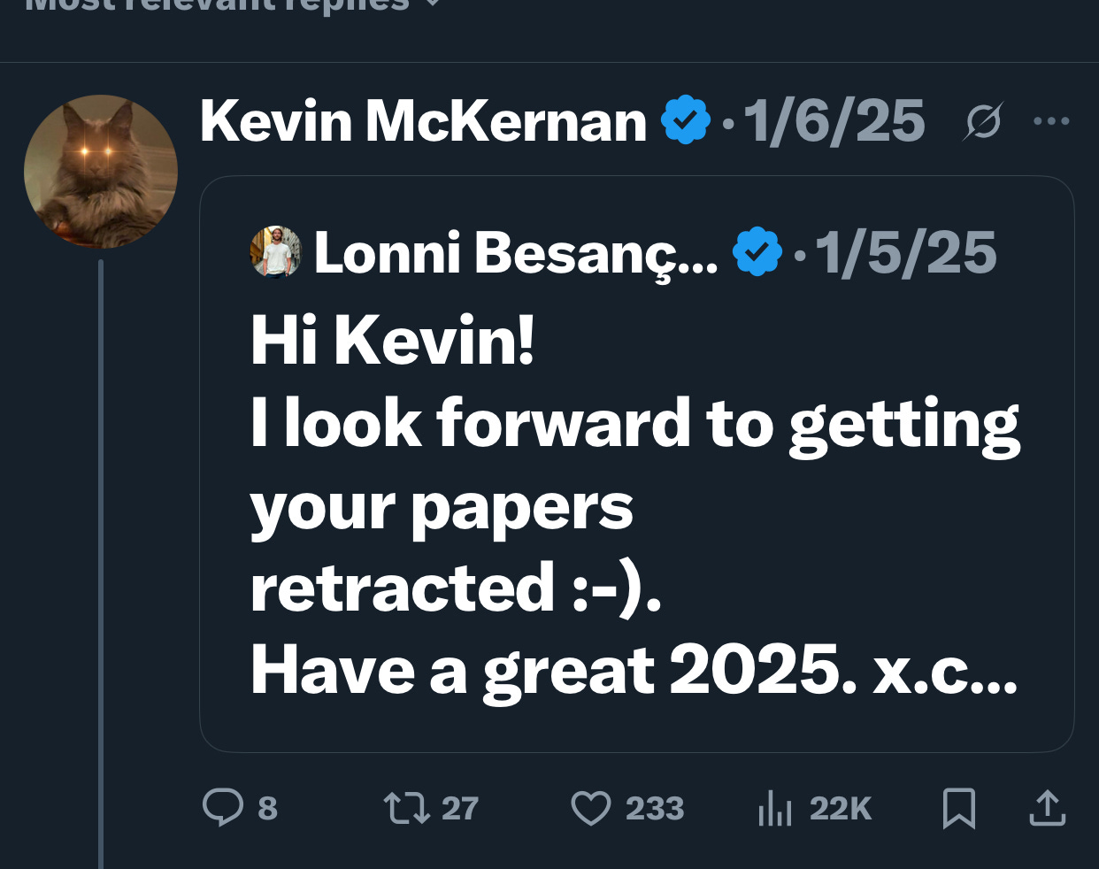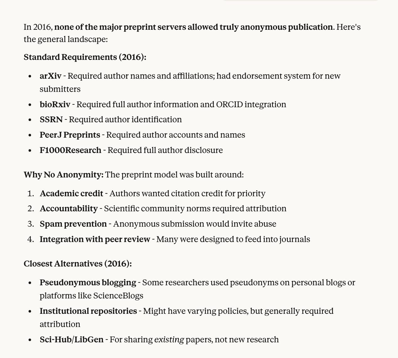 We need methods for Anon Science to emerge and perhaps a zero knowledge proof system that can confirm conflicts of interest without revealing them publicly. If the journals were wise they would embrace this. In any system like this we need an Oracle that can verify the conflicts and maintain the privacy in the process. Likewise, digital signatures can help Anon authors sign their work and build credibility over time and eliminate imposters attempting to hijack unearned reputation. This is something X is not very good at and platforms like Nostr that sign every post with user keys are far more credible for Anon content. There is no gatekeeping on Nostr. Anyone can publish. Your Institution is irrelevant but people can verify that the Anon account isn’t an imposter with a modified version of the data.