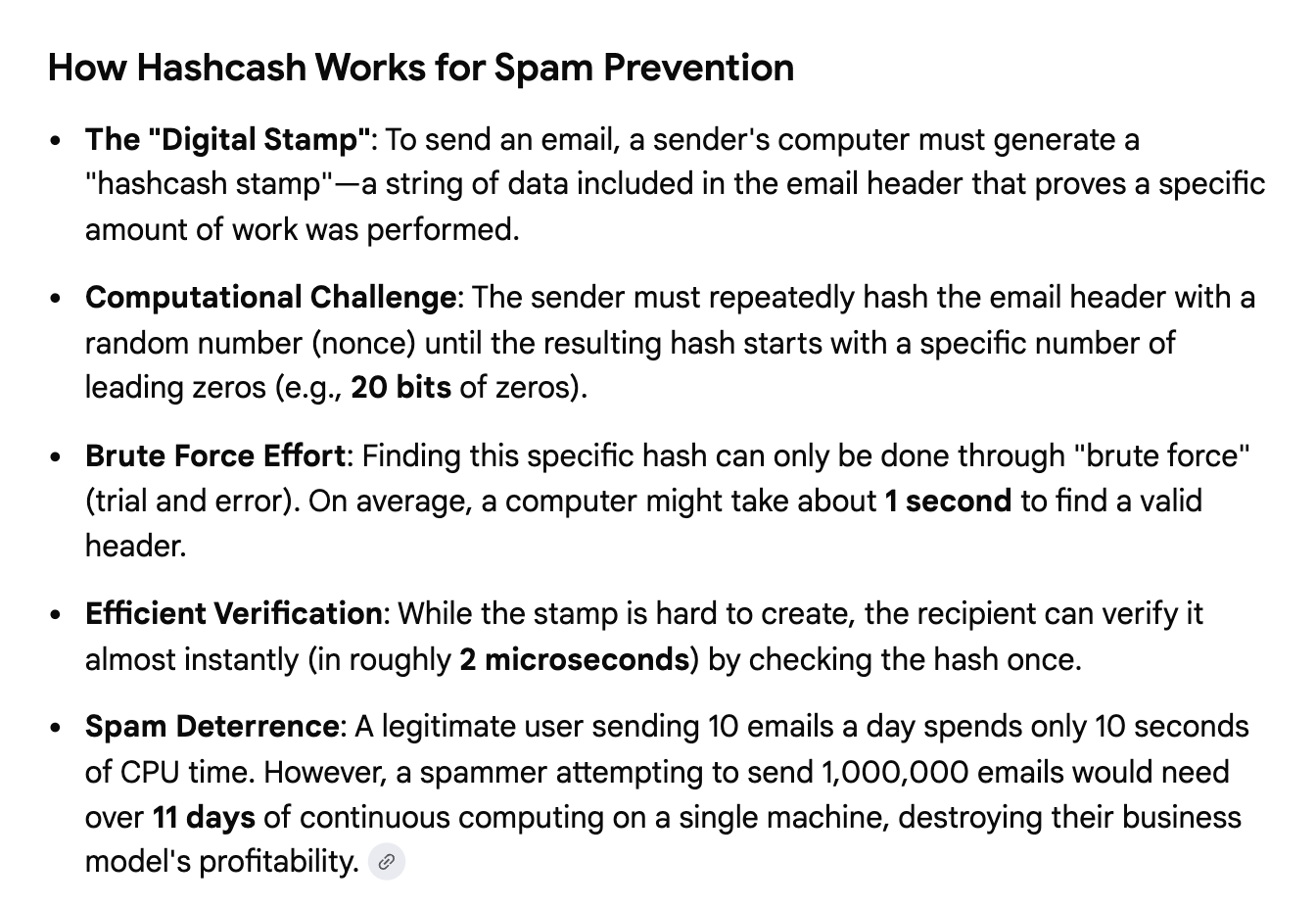 Sending one email would cost 1 second of CPU to compute and a microsecond to verify…. but sending 100,000 emails would come at a cost. These principles are embedded into Bitcoins hashing functions and cited in Satoshi Nakamoto’s seminal work on Bitcoin.