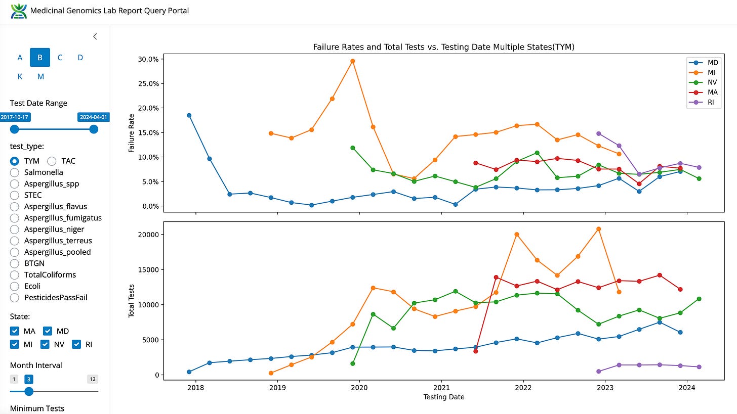 Conflict reminder- We now have an AOAC quantitative TYM test that is specifically designed for Michigan markets. It was benchmarked to DRBC and rated quantitative (not semi-quantitative) by AOAC. It is the only molecular method to obtain this status and many labs in Massachussets have reported to us that it is true to plating. It is being evaluated in many labs in Michigan as it delivers data faster than plating and is very automation friendly, low cost and scalable. This thread is not meant to throw stones at any labs or regulators but to highlight the power of public data and how much it aids in objective peer review. We all want lab shopping to end and have labs compete on a level playing field where competition between the kit providers ensures accuracy and the best pricing.