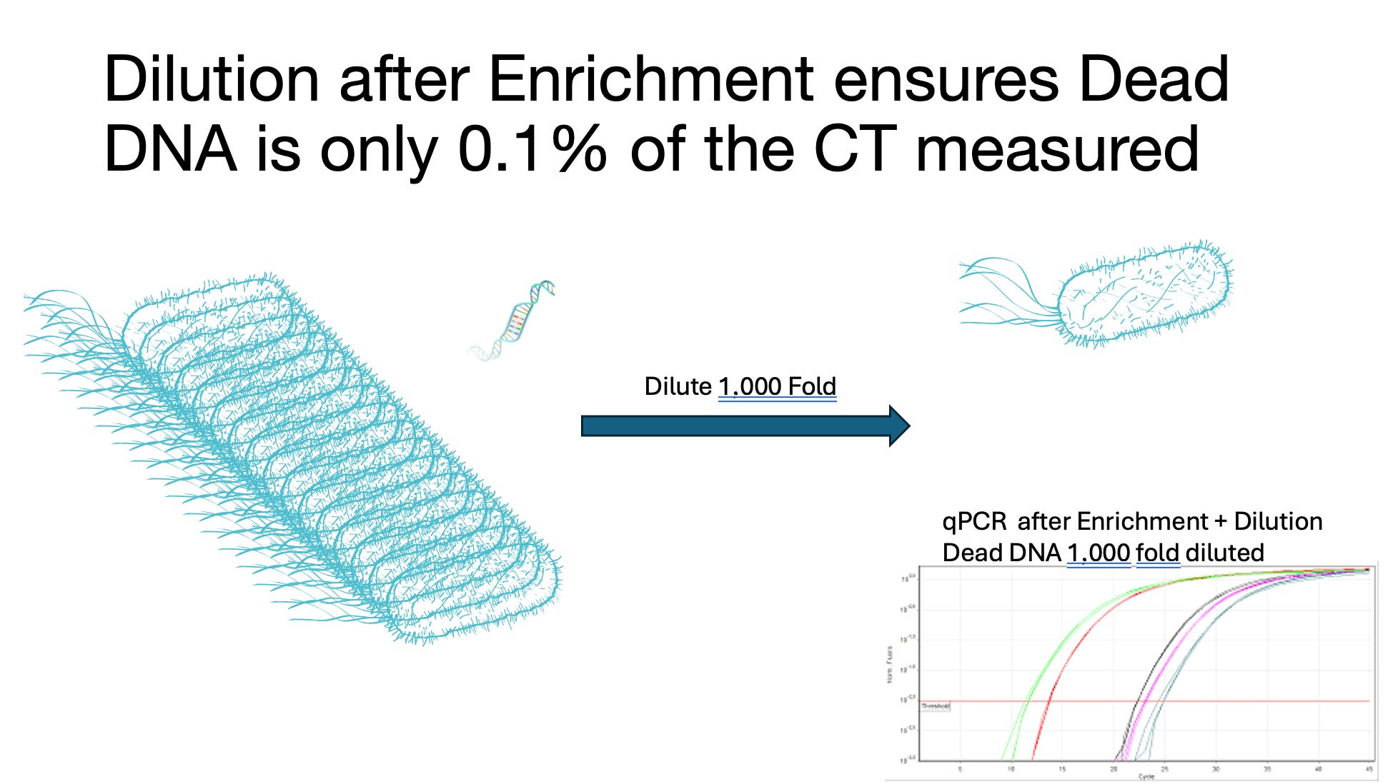 Some methods use heat to kill this DNAase. 95C for 10 minutes is common but this temperature also lyses open cells and now you have a race to kill the DNase before it starts eliminating DNA from cell that were living before you tried to heat kill the DNase. 10 minutes is too long of kill time for an enzyme as cells lyse open immediately at 95C, so we screened many small molecules that could destroy the DNase instantly. We filed and were awarded a patent on this insta-kill method as it was more true to plating.