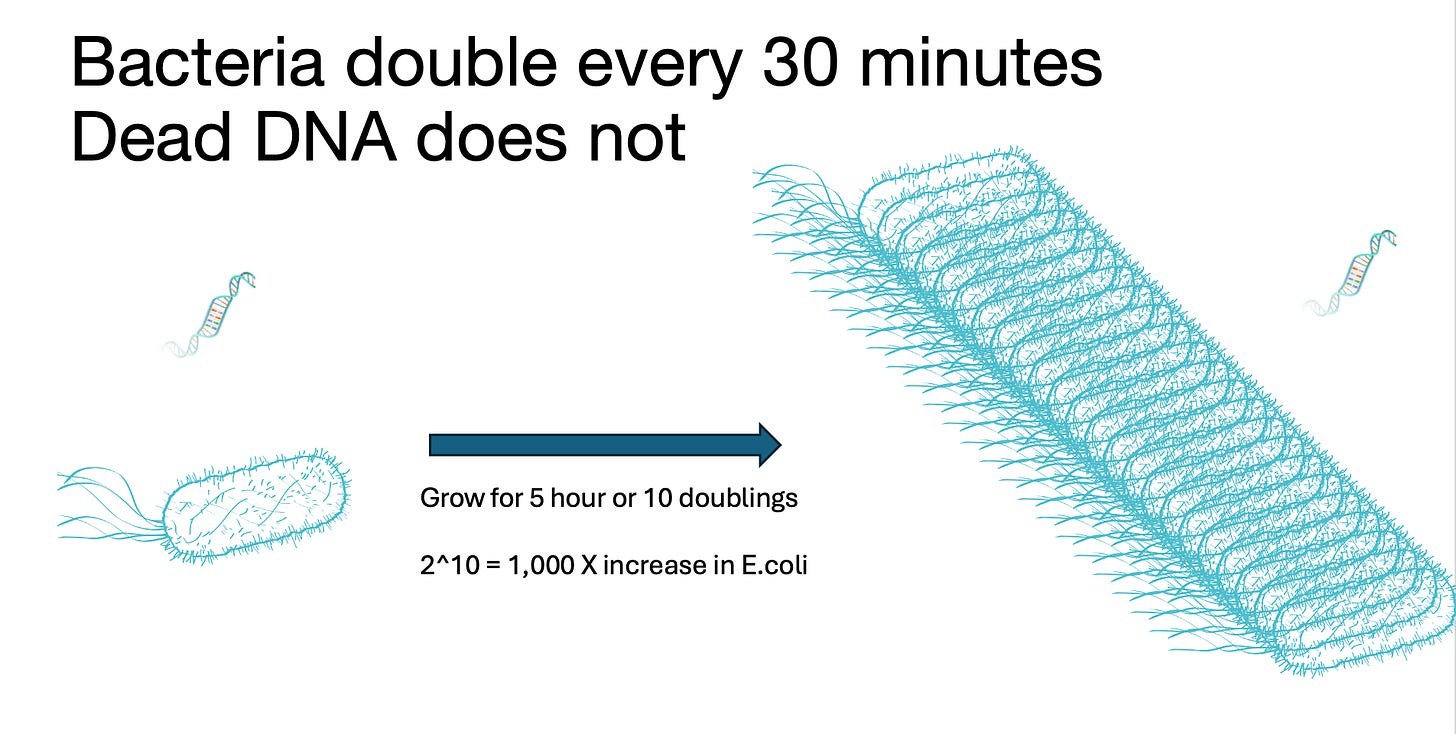 This qPCR →Plating correlation works well until you have millions of microbes present that you partially kill 99% of. Now you have only 1% of the microbes that can form colonies but all of them that can qPCR.