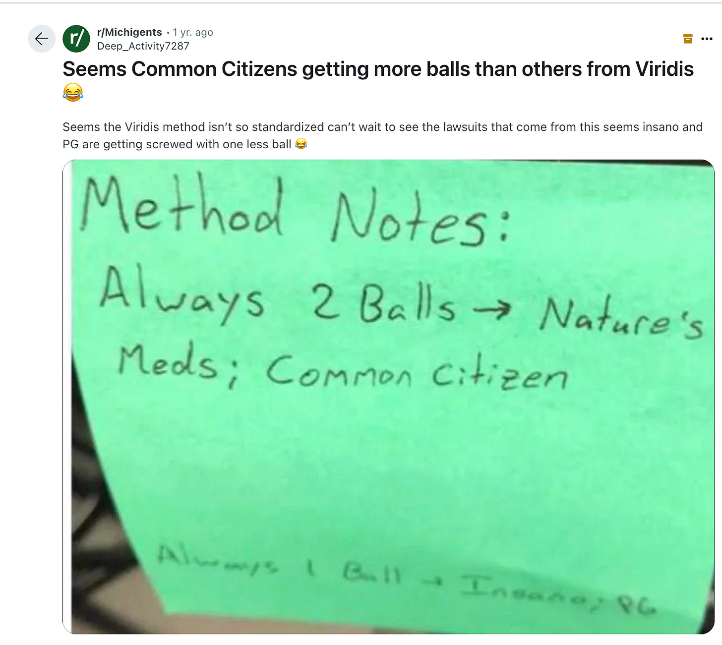 A 2nd issue arose during a CRA audit. Sticky notes were found on instruments suggesting customized THC protocols for certain customers. Viridis was using ceramic balls to homogenize samples and they argued that the trichomes that adhered to these balls should be rinsed into the final test. This would increase THC quants but seemed reasonable on its face as those trichomes came off the flowers originally. But this doesn’t excuse different protocols for different clients. I don’t believe this accusation has resolved itself in court so lets not let reddit posts be the judge, jury and executioner yet.