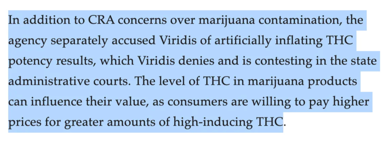 The MI-CRA also accused Viridis of inflating THC values.