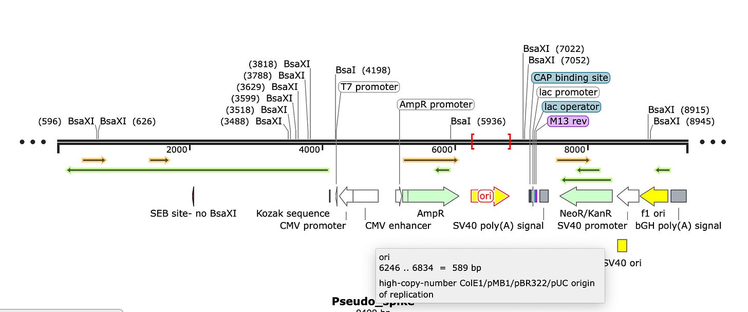 While the BioProject in NCBI has no raw reads in the SRA for analysis (if anyone finds them , please forward), it does have some assembly statistics which give you the depth of coverage of each contig. The contig with the spike protein in the ColE1 plasmid is only 4.2X coverage and these genomes are at 30X coverage? The blue contig below is the spike protein encoded plasmid. So the coverage of the ColE1 plasmid is 2-3 orders of magnitude off. Being a high copy plasmid it should have 20-30X more coverage than the 30X genome coverage. Instead it has only 1/7th of the coverage of the genome.