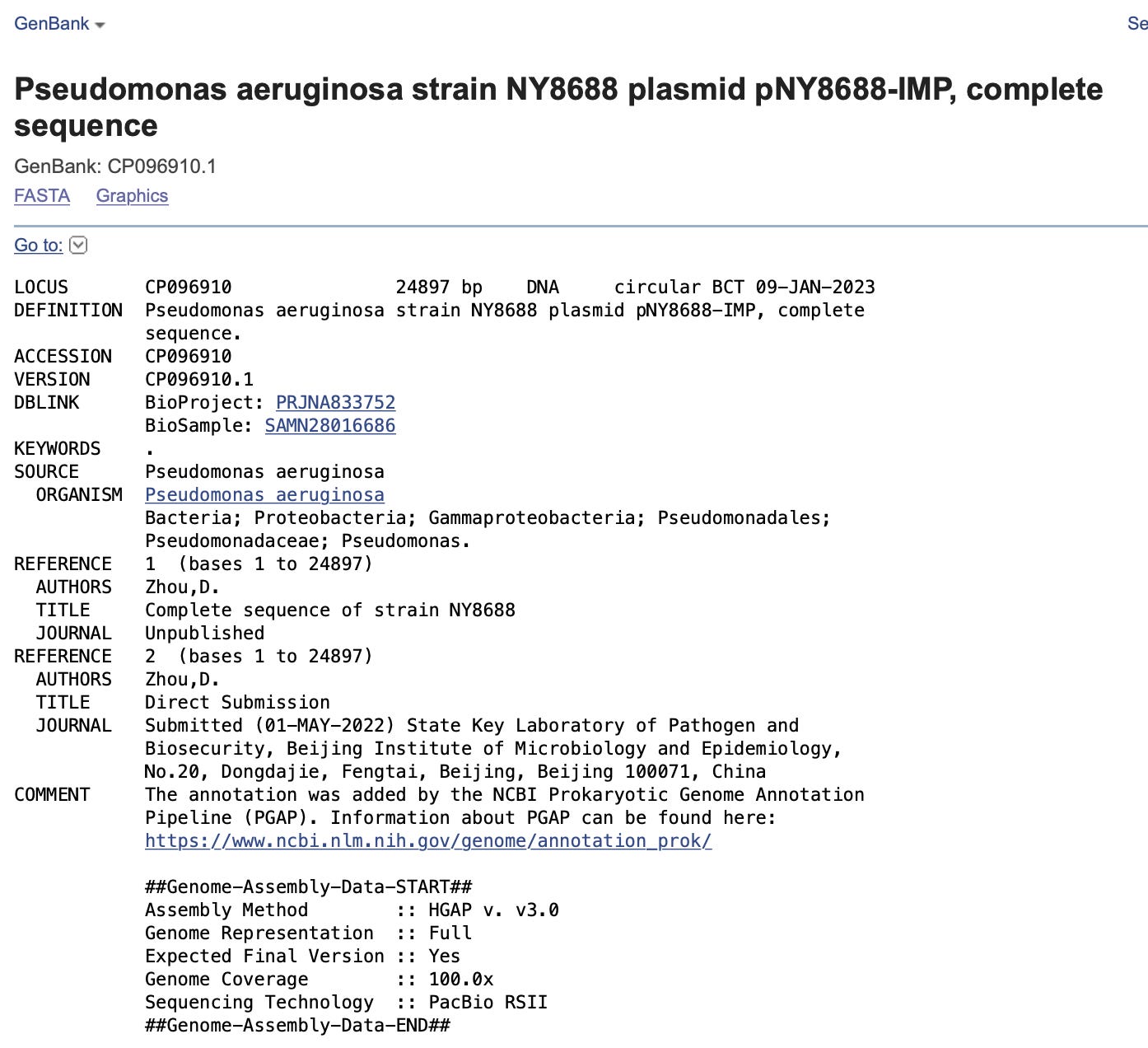 One hypothesis that favors these plasmids being from the date of collection rests on Gentamicin providing some selection. Many P.aeruginosa infected patients ‘might be’ put on this antibiotic and provide the required selection for the plasmid to propagate. Someone suggested Gentamicin resistance is missing from the genome. These can be complicated searches as there are many routes to resistance so it is best to rely on industrial tools designed to flag these in genomes. OneCodex has tools for this.