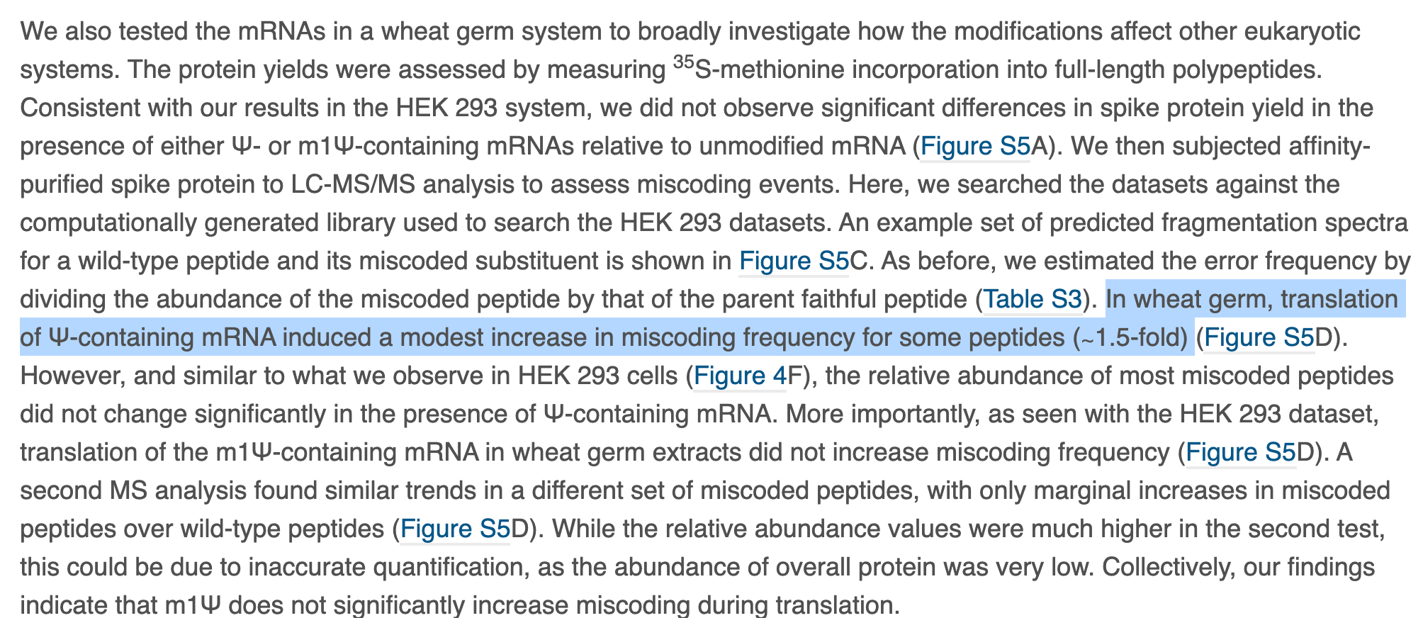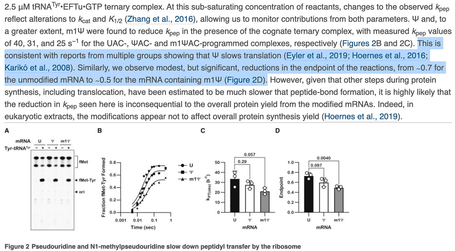 The paper also depicts ‘modest but significant’ reductions in the rate of protein synthesis. This is Nerf language where confidence intervals and p values are preferred. They then change the topic to protein yield to smoke screen this significant finding. Zero mention of the Ribosomal Pausing and the impact this may have on protein folding.