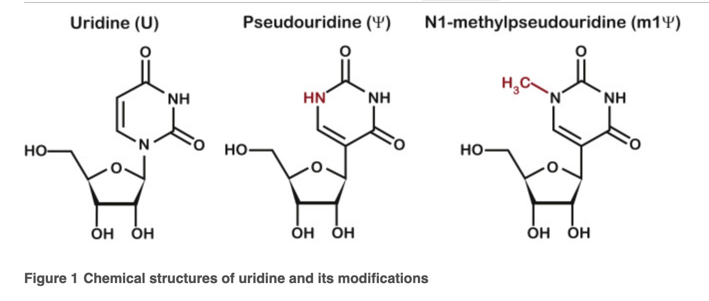 As you can see, there are many in the genetic code and to simplify this to a single base replacement when the mRNA in the vaccines have all of the uracils replaced with these is a reductio ad absurdum.