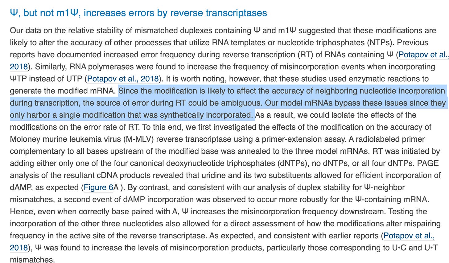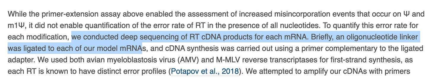 First fowl- Why on Earth are they studying Reverse Transcriptase error rates when the vax manufacturing process doesn’t entail this? The process utilizes a DNA template from a plasmid and a RNA polymerase. I’m confused by this whole section.