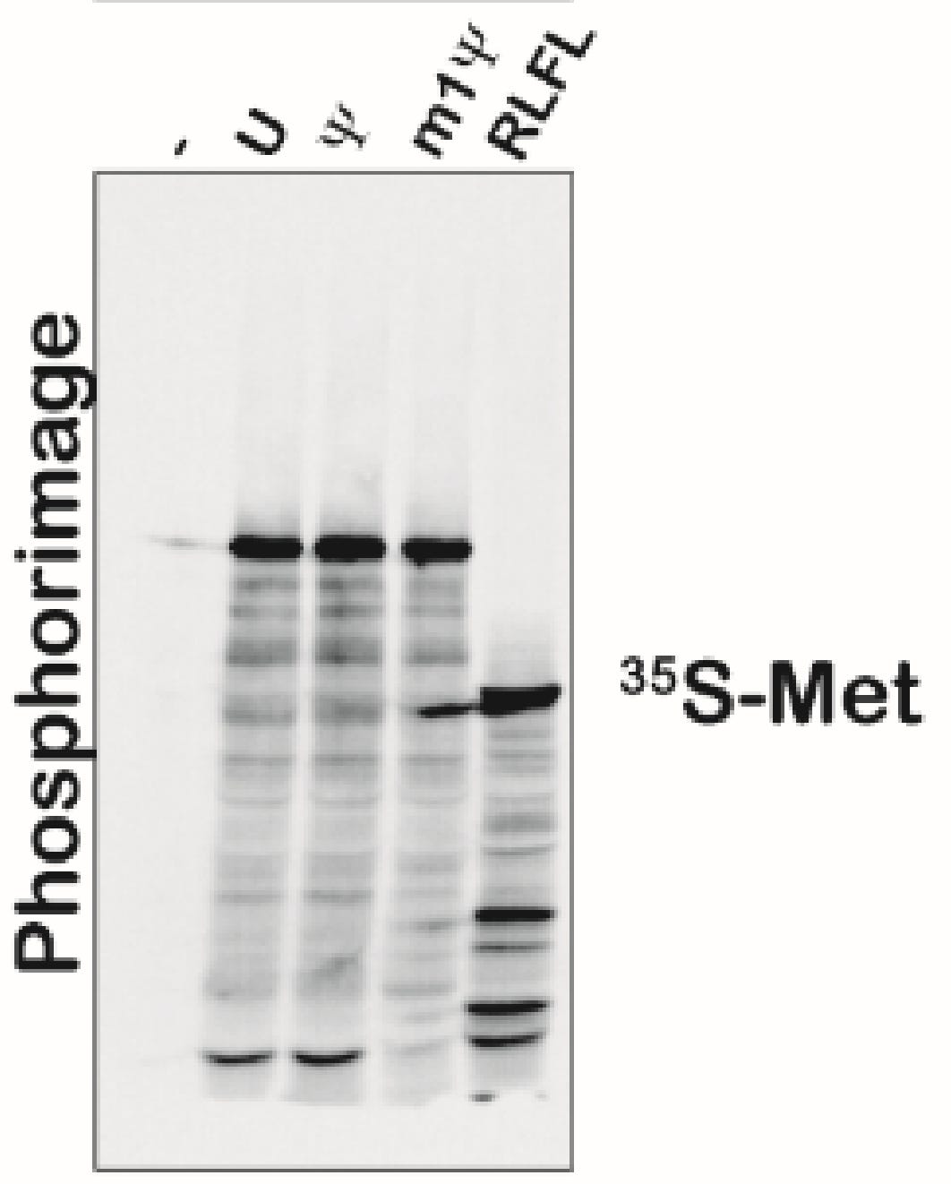 Moving on to Figure S5, we have phosphoimager data with different banding patterns that are discussed as equivalent. Maybe there is some lane to lane bleed but the m1Psi appears to have more background bands.