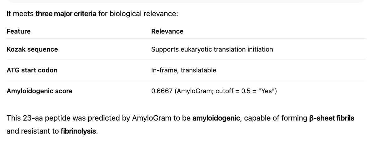 While ChatGPT acknowledges the expression is unlikely to be efficient it is also likely non-zero. When it comes to amyloidogenic sequences, small amounts matter.