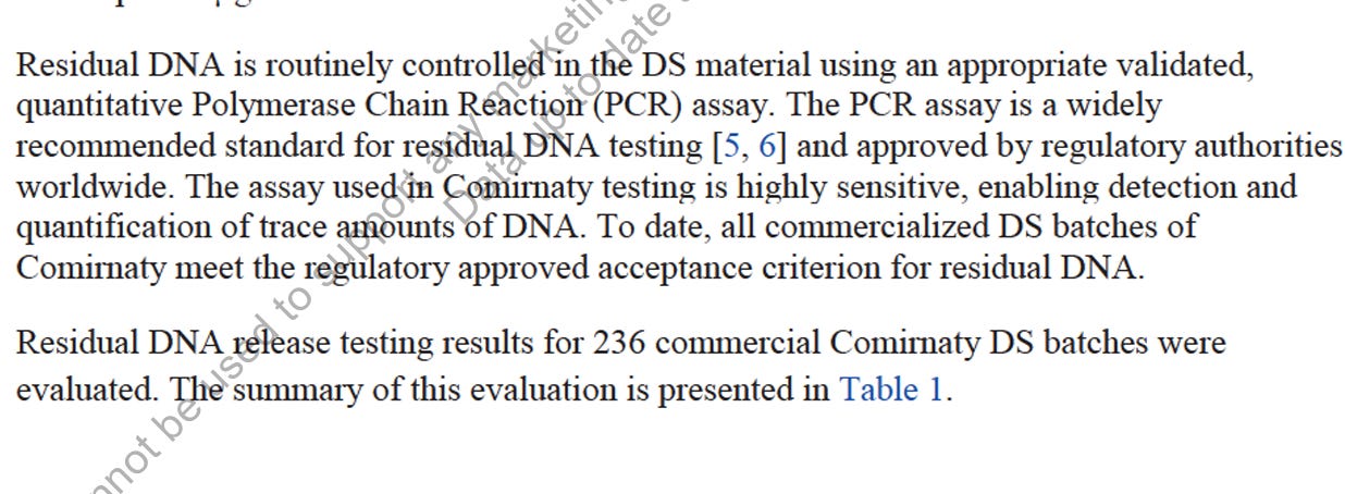 Moderna’s patents speak against this nonsense. PCR is not the preferred method as it only measures a single loci and DNA digestion is not uniform across the plasmid. In particular, the spike region has interfering mRNA that form RNA/DNA hybrids which cannot be digested by DNaseI (Sutton et al). This has been known since 1997.