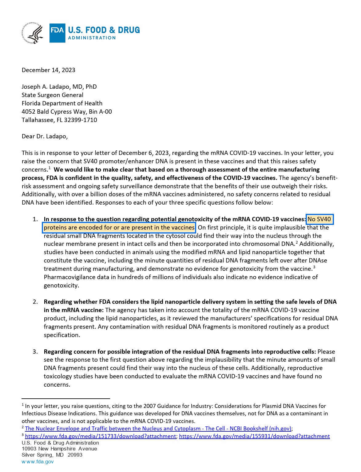 In summary, It is not accurate for Pfizer to claim that none of this residual plasmid DNA is expressed into a protein in mammalian cells. This is important as it demonstrates that Peter Marks lied to Dr. Ladapo in his response to Dr. Ladapo’s concerns over this. Not only are proteins predicted to be expressed from these fragments, but they are amyloidogenic and can trigger the fibrinogen pathway; an adverse event that is quite obvious in the vaccine injured.