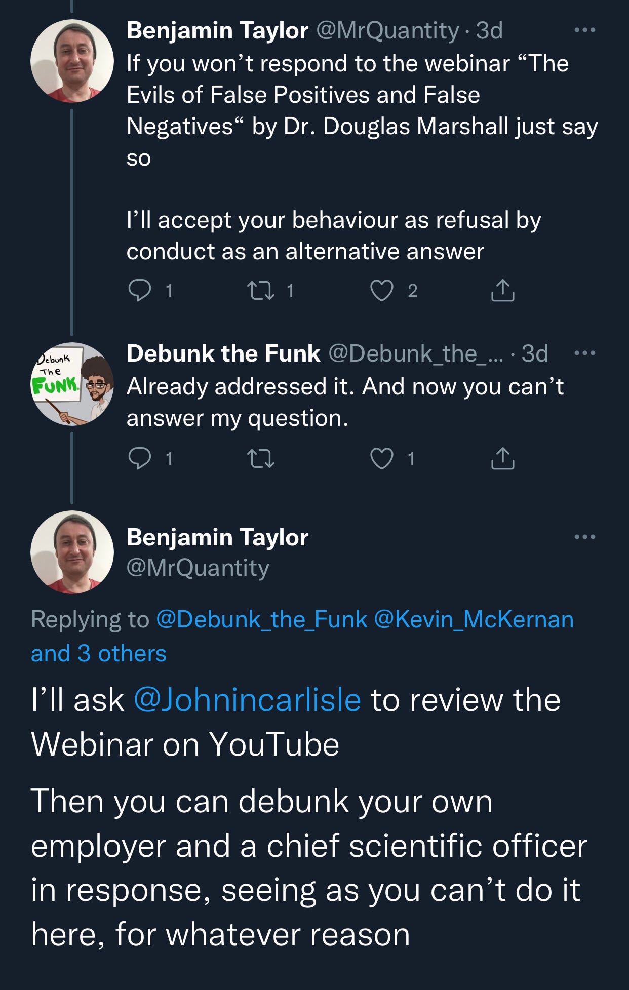 Benjamin Taylor also pointed out that Debunks employer is a well respected lab known as Eurofins who has a substantial C19 testing business.