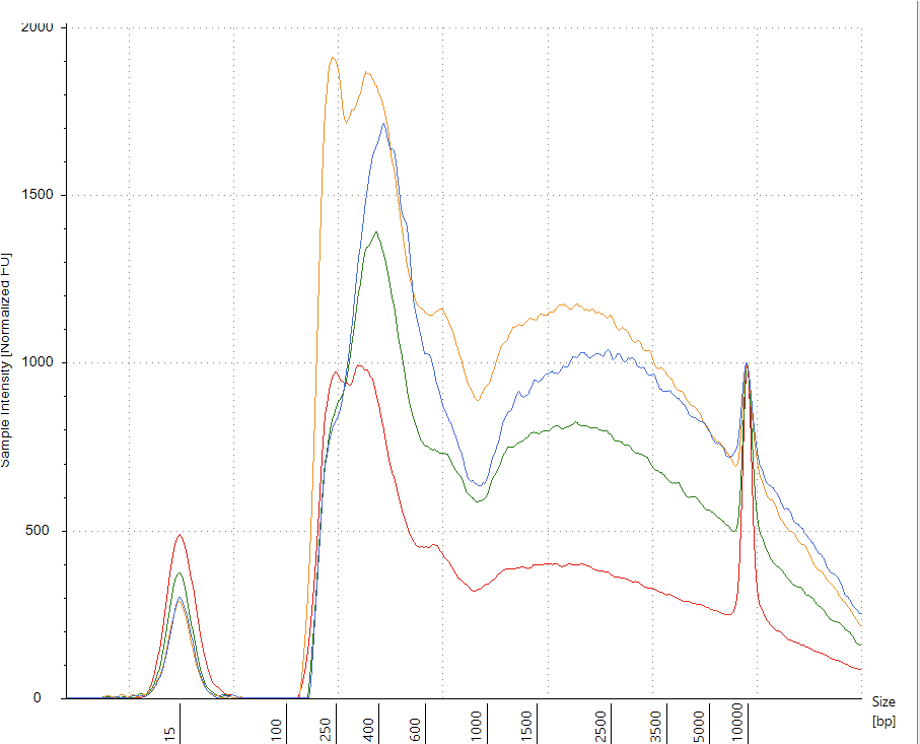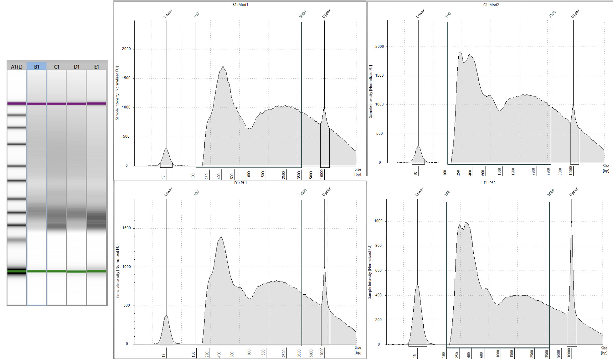 Figure 2 depicts the final library sizes produced from these methods. These do not reflect on the manufacturing process of either vaccine provider but are the expected results from an RNA-Seq based kit.