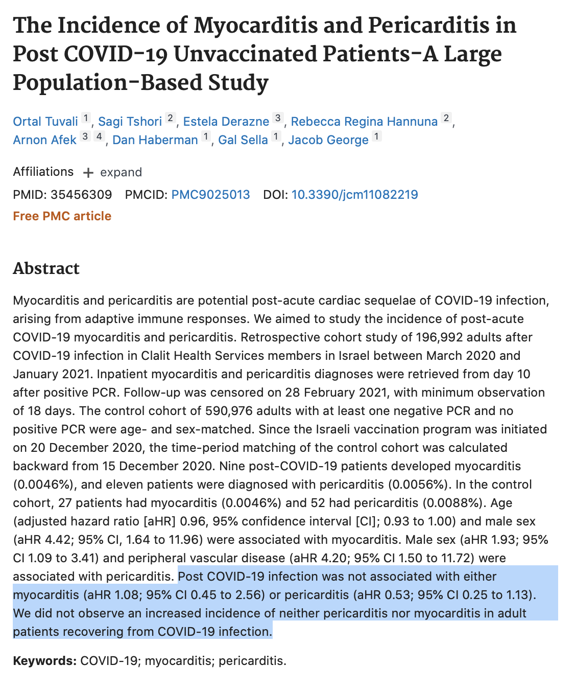 Andrew Bostom is a great follow on the C19 vs mRNA myocarditis debate-