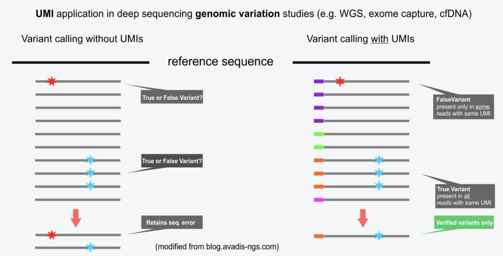 To survey transcriptional error rates estimated to be 1:3,000-4,000 in frequency described by Chen et al., Unique Molecular Identifiers are often (UMIs) required.