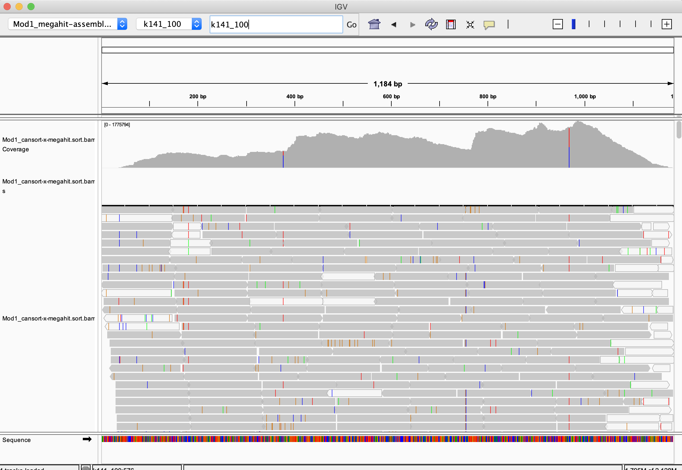 IGV- Integrated Genome Viewer used to visualize Illumina sequencing reads.