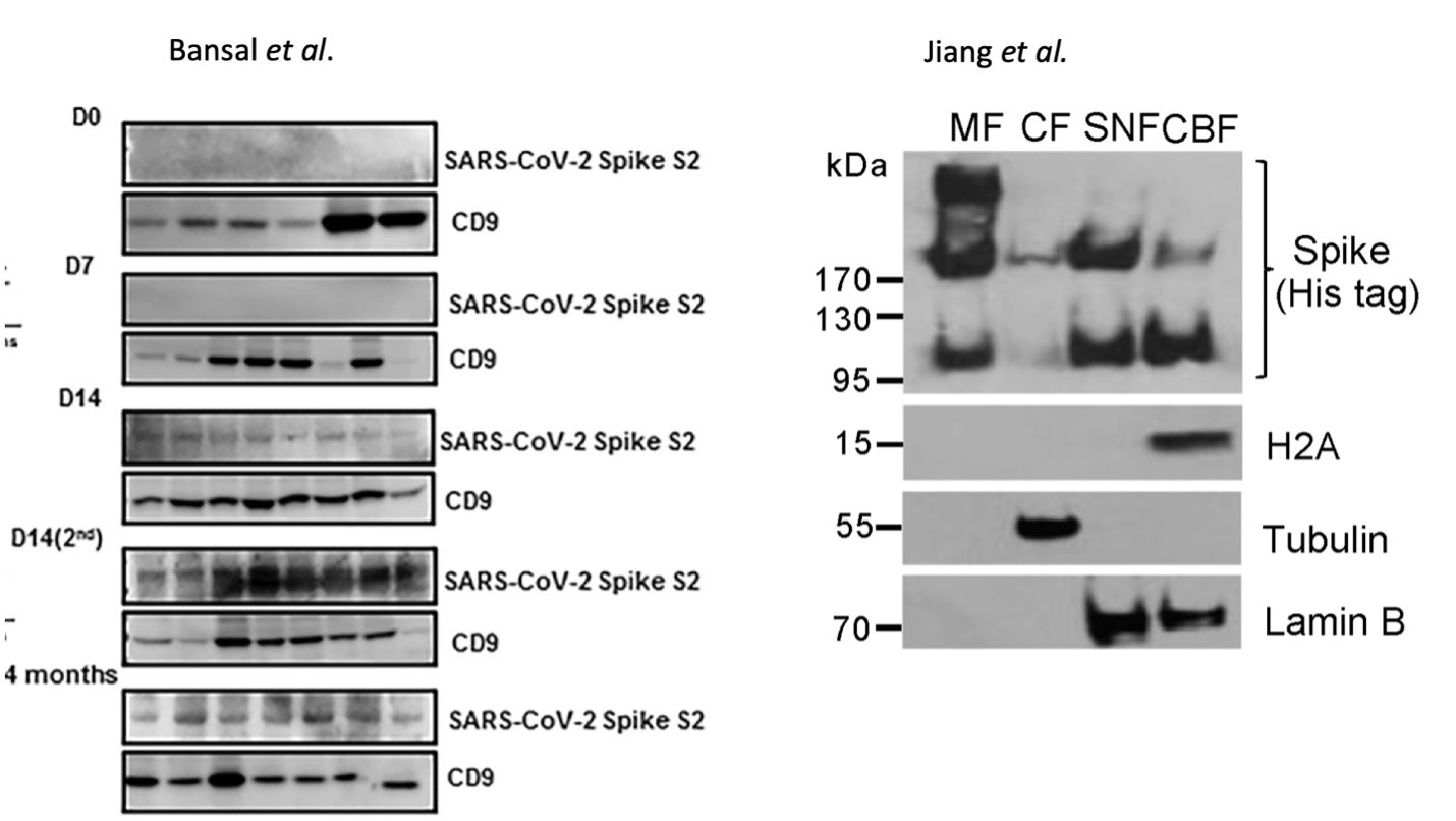 How much spike is too much? Bansal et al note that Spike protein can be detected circulating on exosomes membranes 4 months post vaccination 58. Virus derived Spike protein has been detected 15 months later in post-acute sequelae patients (PASC or long COVID)38. The vaccine programs have not existed long enough to form a valid comparison in the same tissues. Patterson has recently presented data that both the S1 and S2 segments of spike protein are recoverable from vaccinated persons many months after immunization (personal communication).