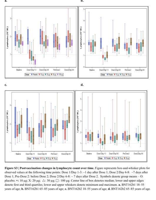 White Blood Cells-Neutropenia:An unfortunate side effect observed in 46% of the vaccination arm in the AZ trial. The Pfizer trial also experienced Lymphocytopenia.