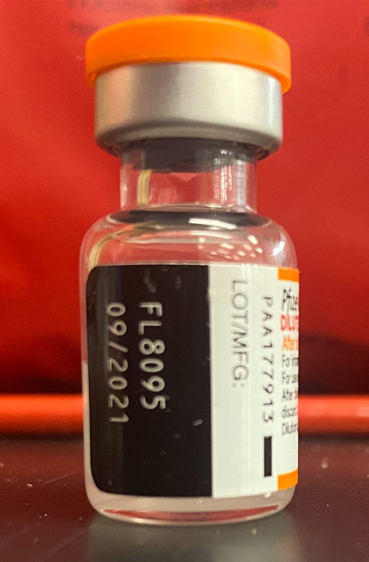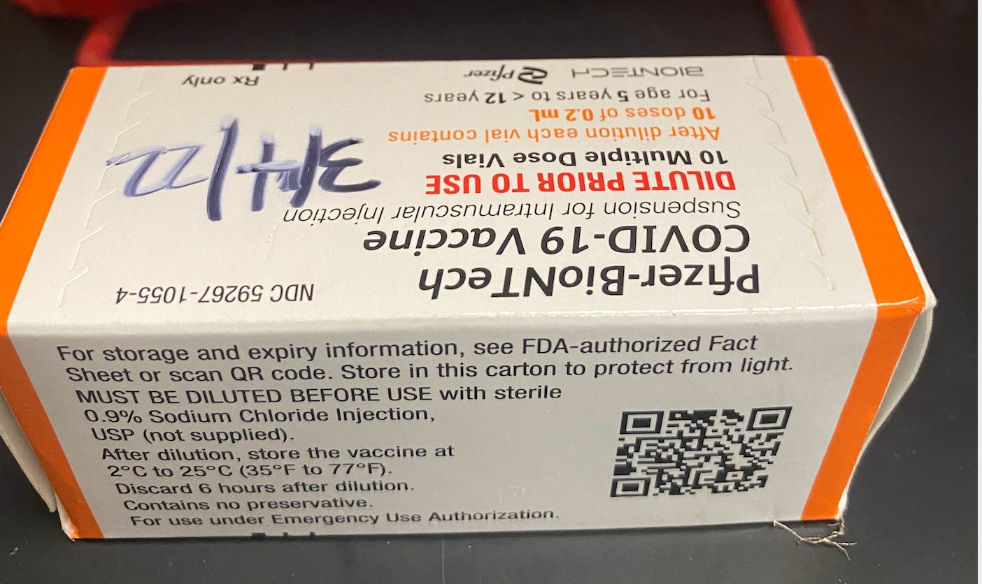 Vials were unopened and dated from 3/4/2022. The instructions call for dilution prior to use based on the age of the patient. The orange cap tubes are specific for 5-12 year olds. The label claims, after dilution with 1.3ml of saline there should be ten 200ul doses so ~700ul of vaccine exist in the vial prior to dilution. qPCR boil preps were performed without dilution. The minor dilution would only move the qPCR results 1-2 CTs. The PCR methods used for this study are described previously. The boil method used in this study is described previously.