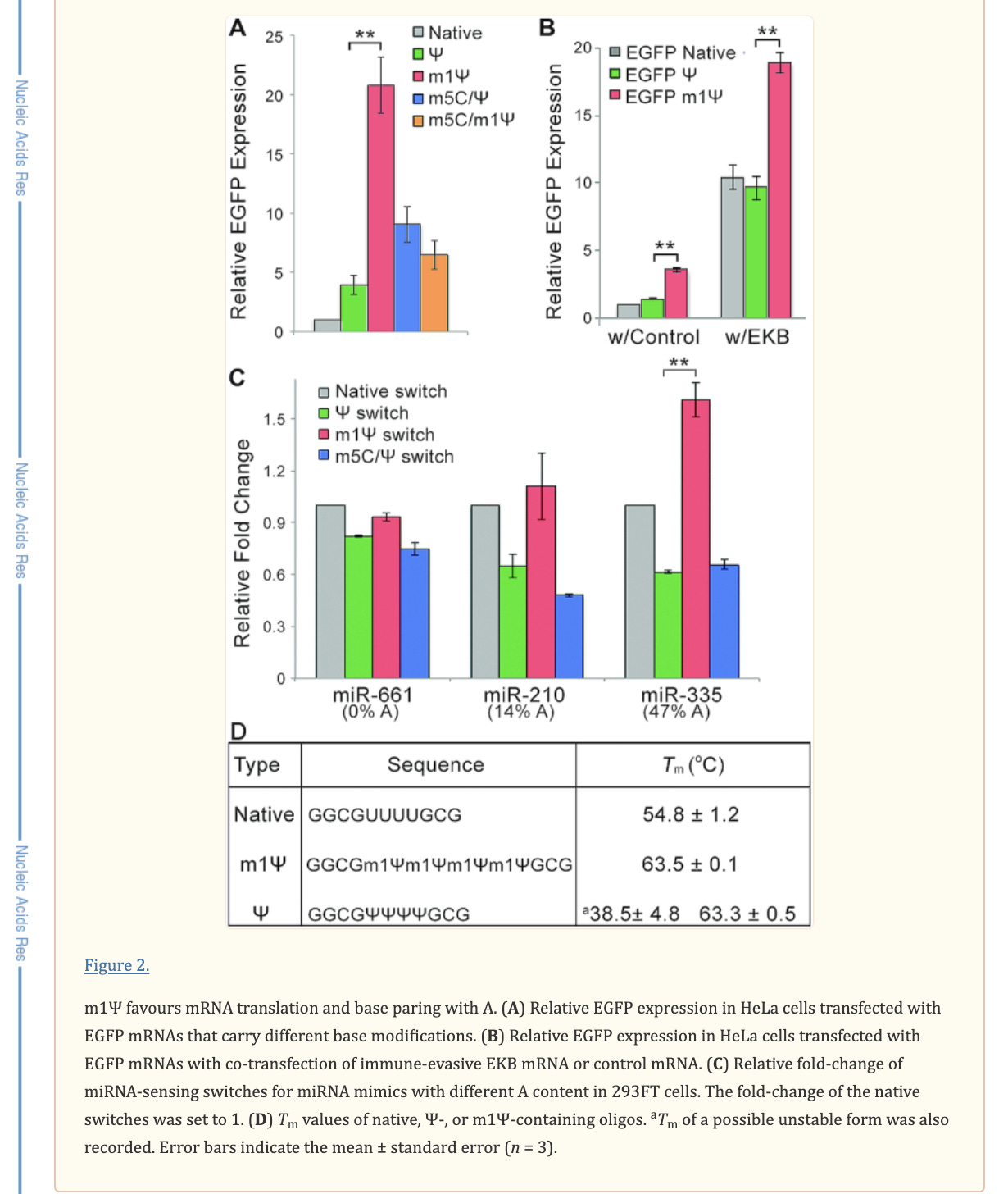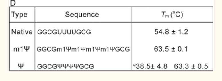 There is an important paper from Callum Parr et al. on the changes in melting temperature with the introduction of m1Ψ.