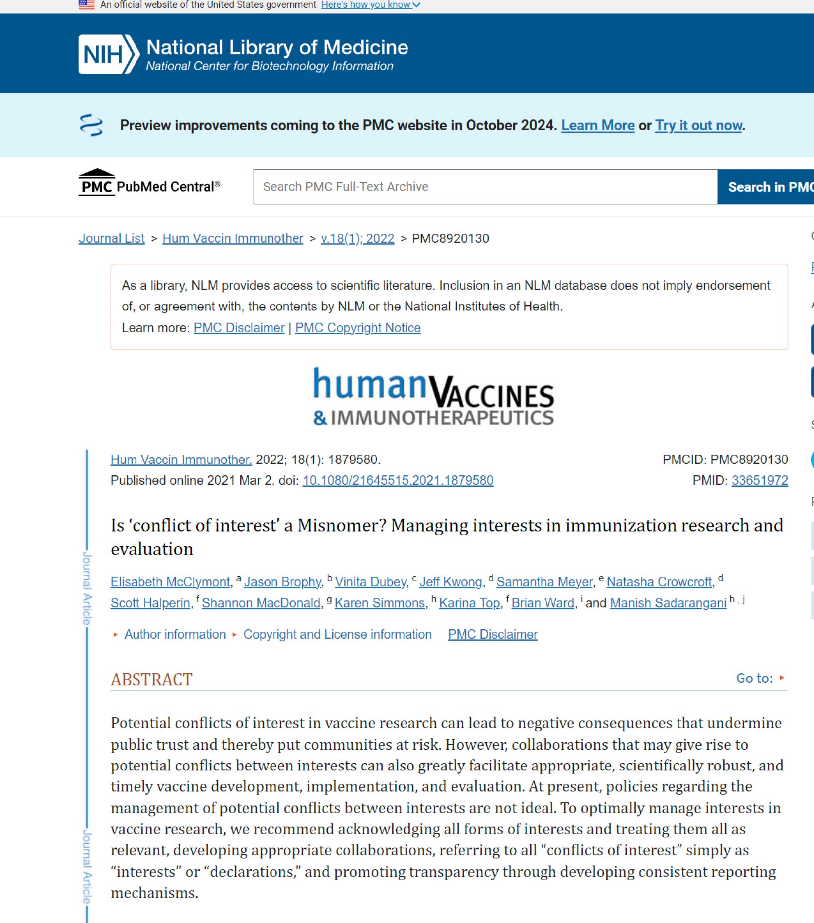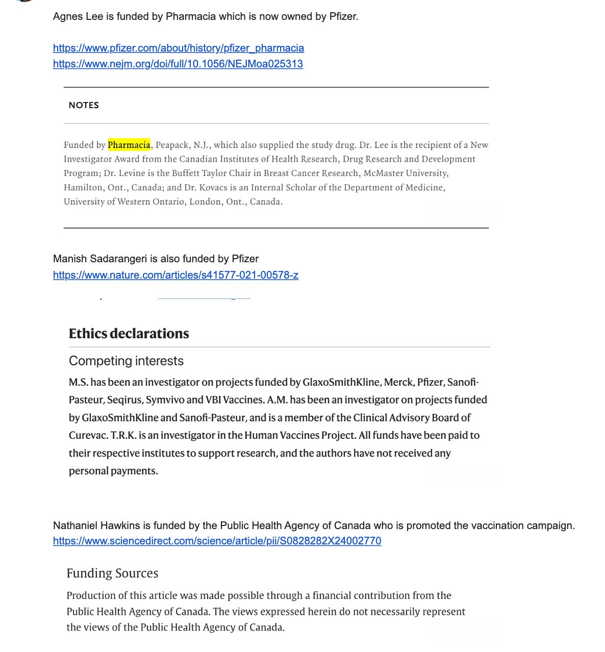 When these conflicts were pointed out they lobbied to not find new experts but beg for COIs to not matter by supply this paper.