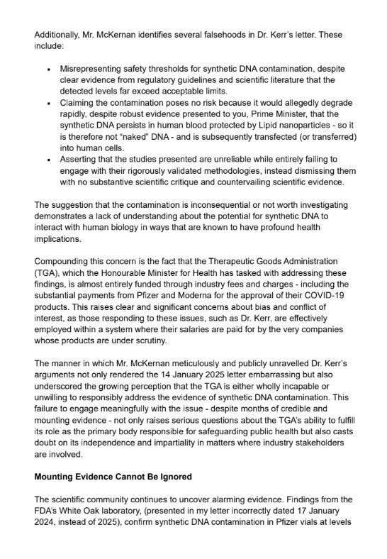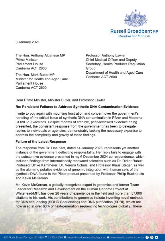 Russel Broadbent MP from Monash fired back on February 3rd to the TGA over this chronic gaslighting we continue to see at regulatory bodies internationally.