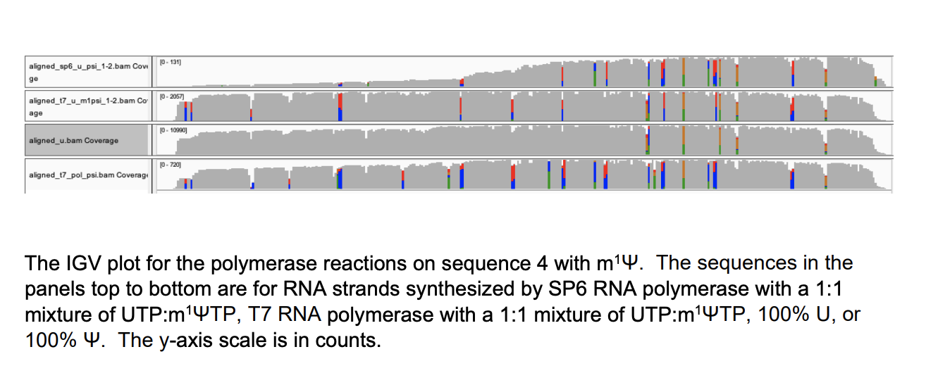 These manifest in False positive SNPs in IGV across the template where ever a U→m1Ψ exists.
