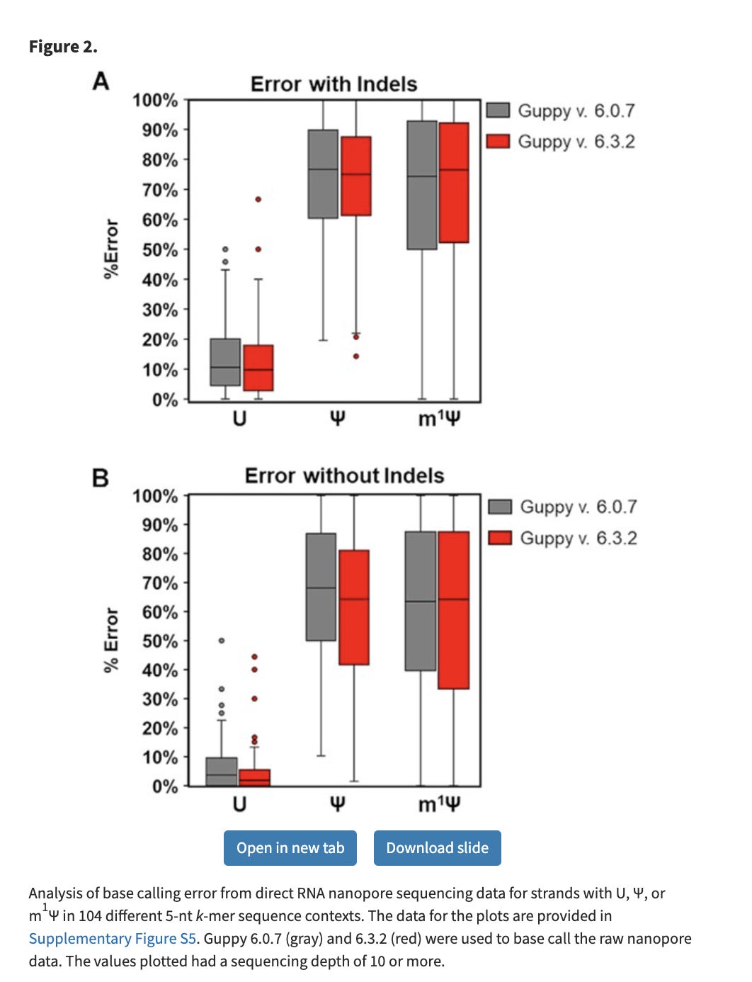 Since the m1Ψ base is chemically different than uracil, it creates a massive elevation in error rates on the Nanopore sequencers. The nanopores sense this as a different base, just like your polymerases and ribosomes, albeit the nanopore error is more extreme.