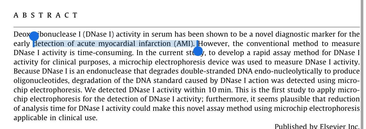 Note, they are interested in using circulating DNA as a marker for acute myocardial infarction (AMI).