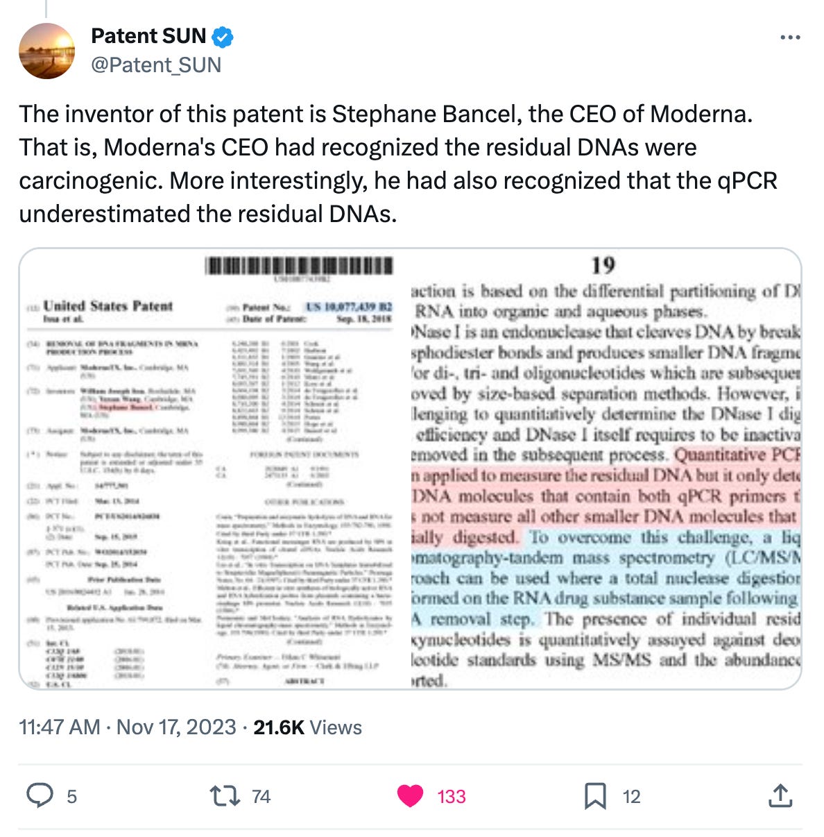 Lets consider the EMA Specification of 330ng/mg of DNA/RNA. You need to hit 1 DNA molecule per 3030 RNA molecules. If you measure the RNA with a tool that double counts RNA for every DNA molecule you have, and then measure the DNA with a tool that Moderna’s own patents declare undercounts the DNA, you can game these regulations very easily.