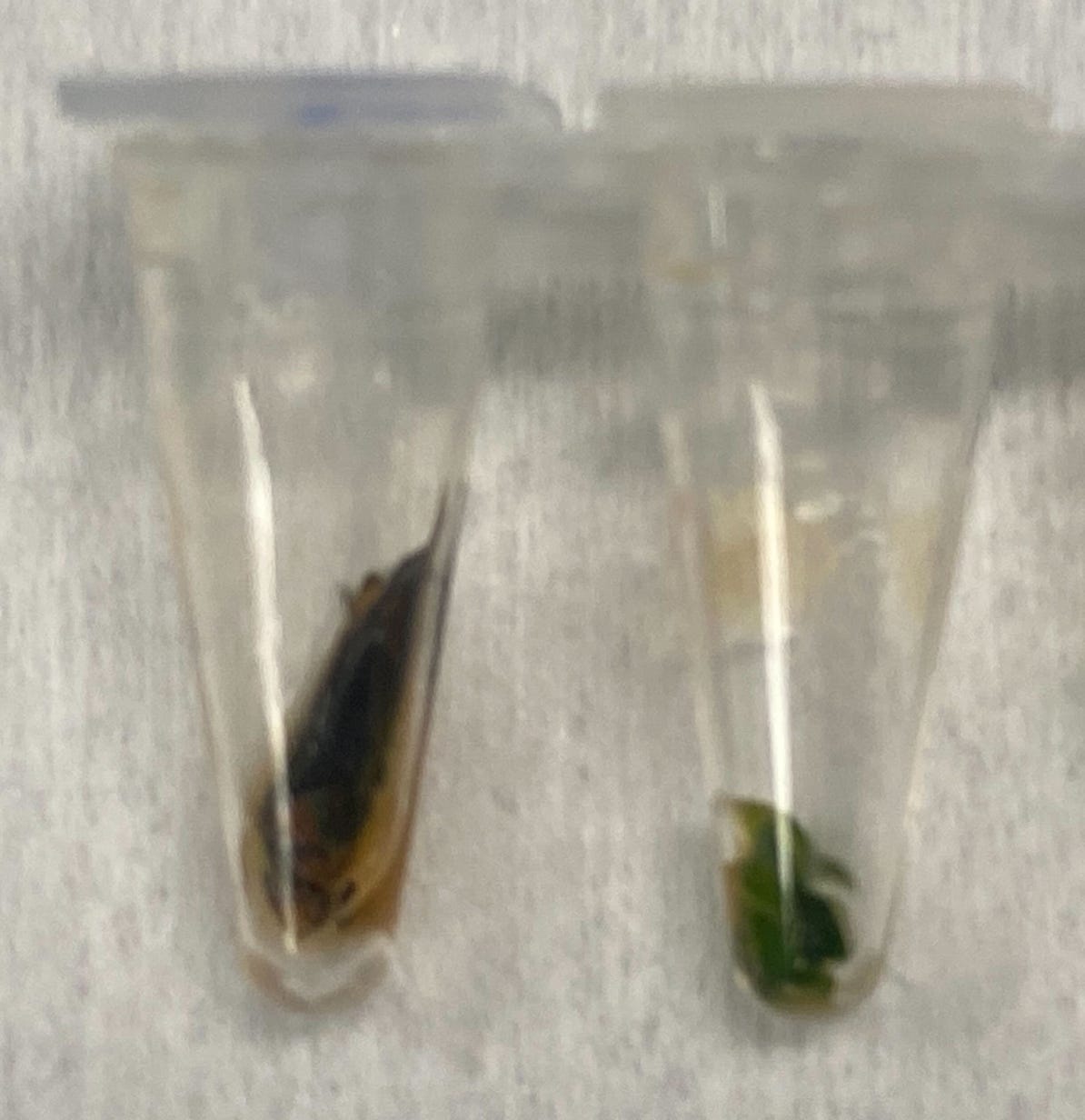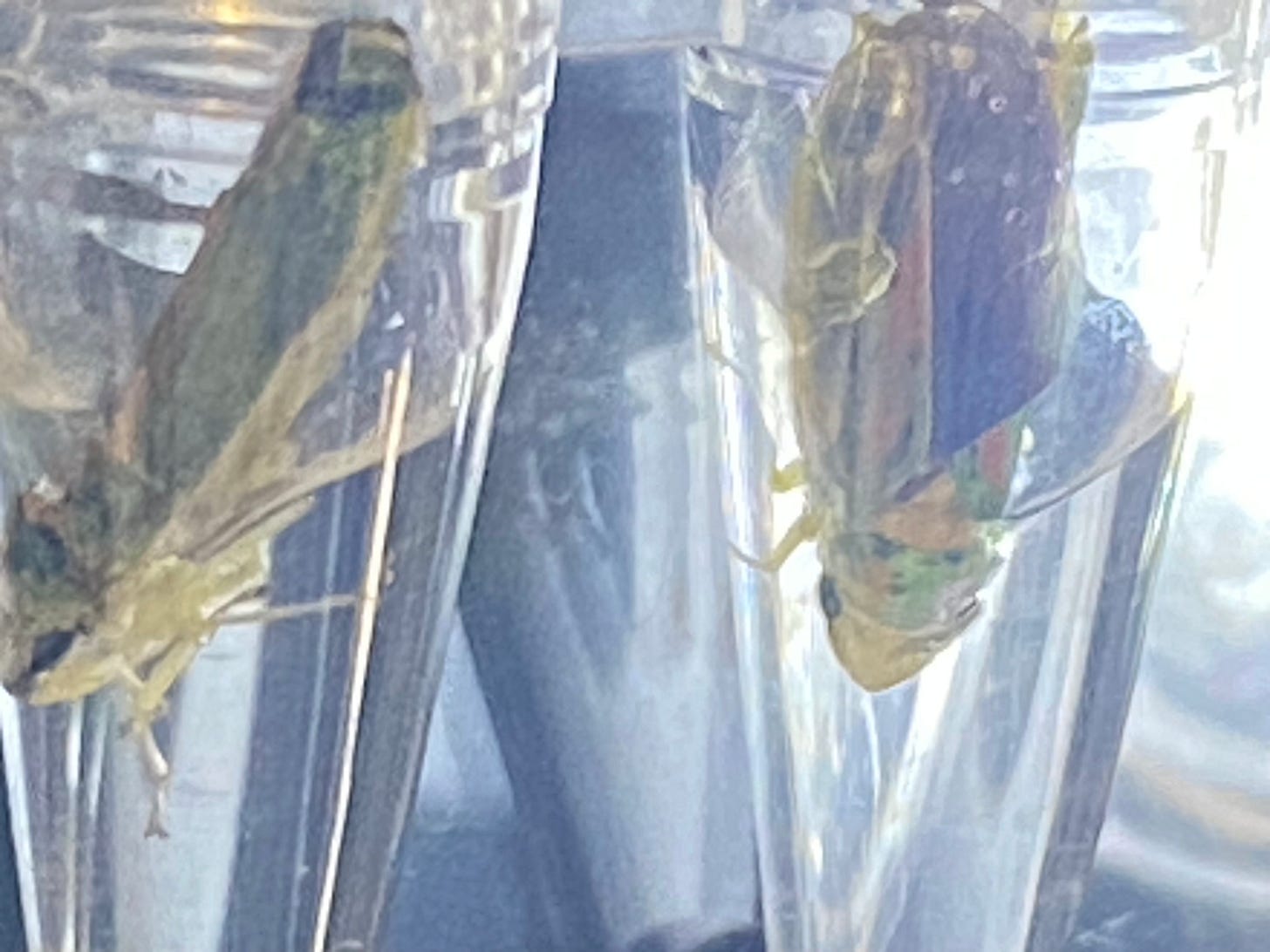 Collin Palmer has been keeping HpLVd plants arounds to study them. After he noticed leafhoppers on his HpLVd infected plant, he decided to have them tested for HpLVd to see if they contain any viroid. His instincts were spot on.