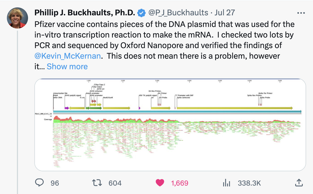 This is often cited as proof that the vaccines are being tested. I can’t blame an accountant for not understanding what a sham this is but they confidently point to redacted reports where the RNA and DNA are measured using different techniques to cook the books. One technique is used to inflate the RNA value and another technique used to depress the DNA number. They should both be measured with qPCR/RT-qPCR so the ratiometric number is normalized to the same technique.