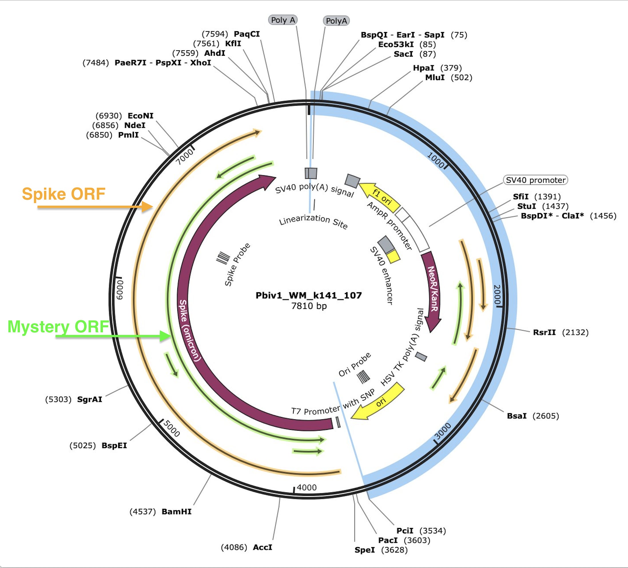 What is surprising to everyone who inspects the Pfizer plasmid is that the ORF that contains the spike protein also has a 1252 amino acid ORF on the reverse strand.
