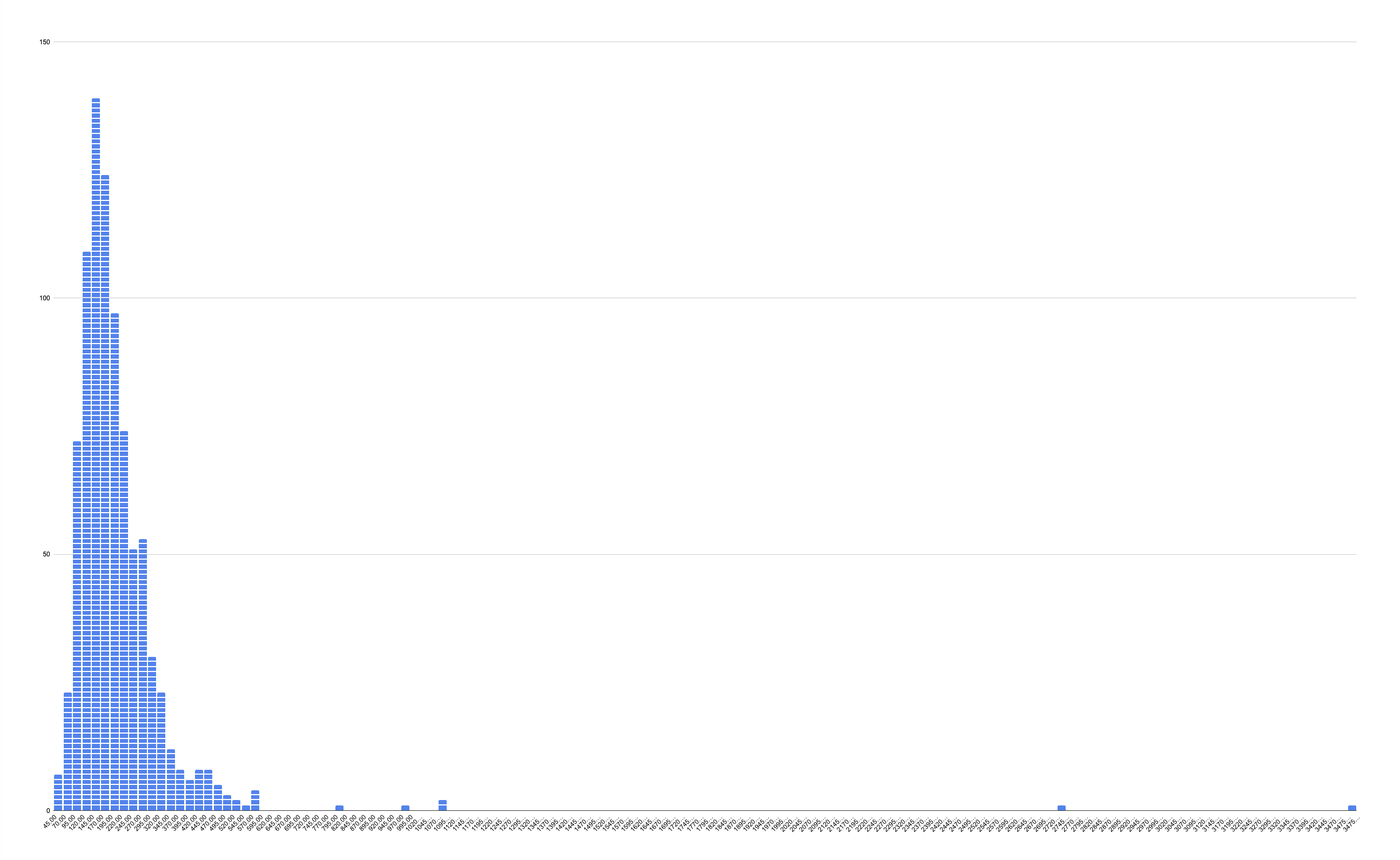 The mean read length of our data is 214 bases. This is over the 200bp guideline. Most striking in the data is the 2.6Kb-3.5Kb reads that emerged.