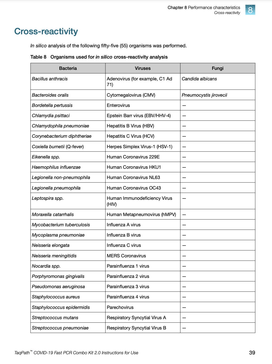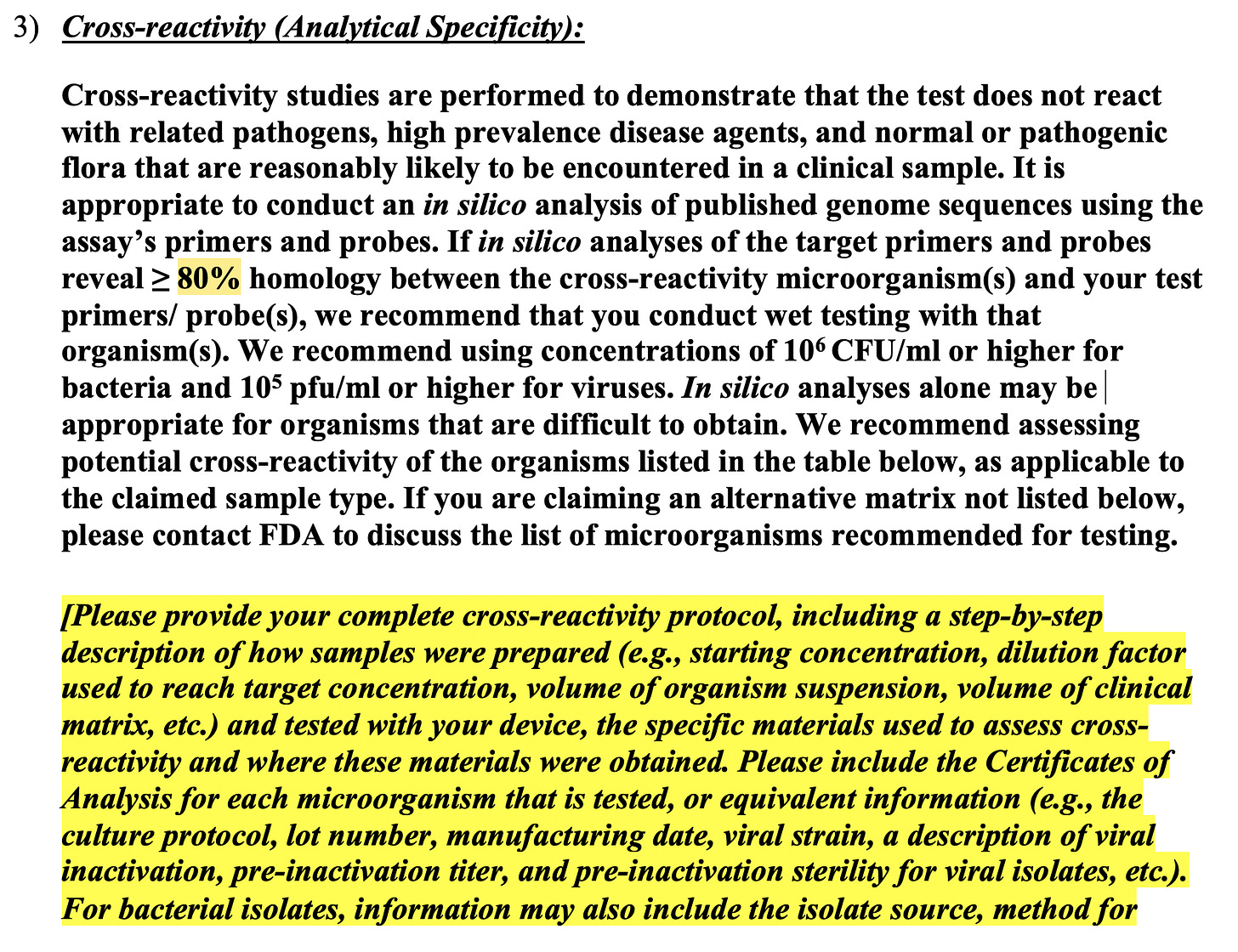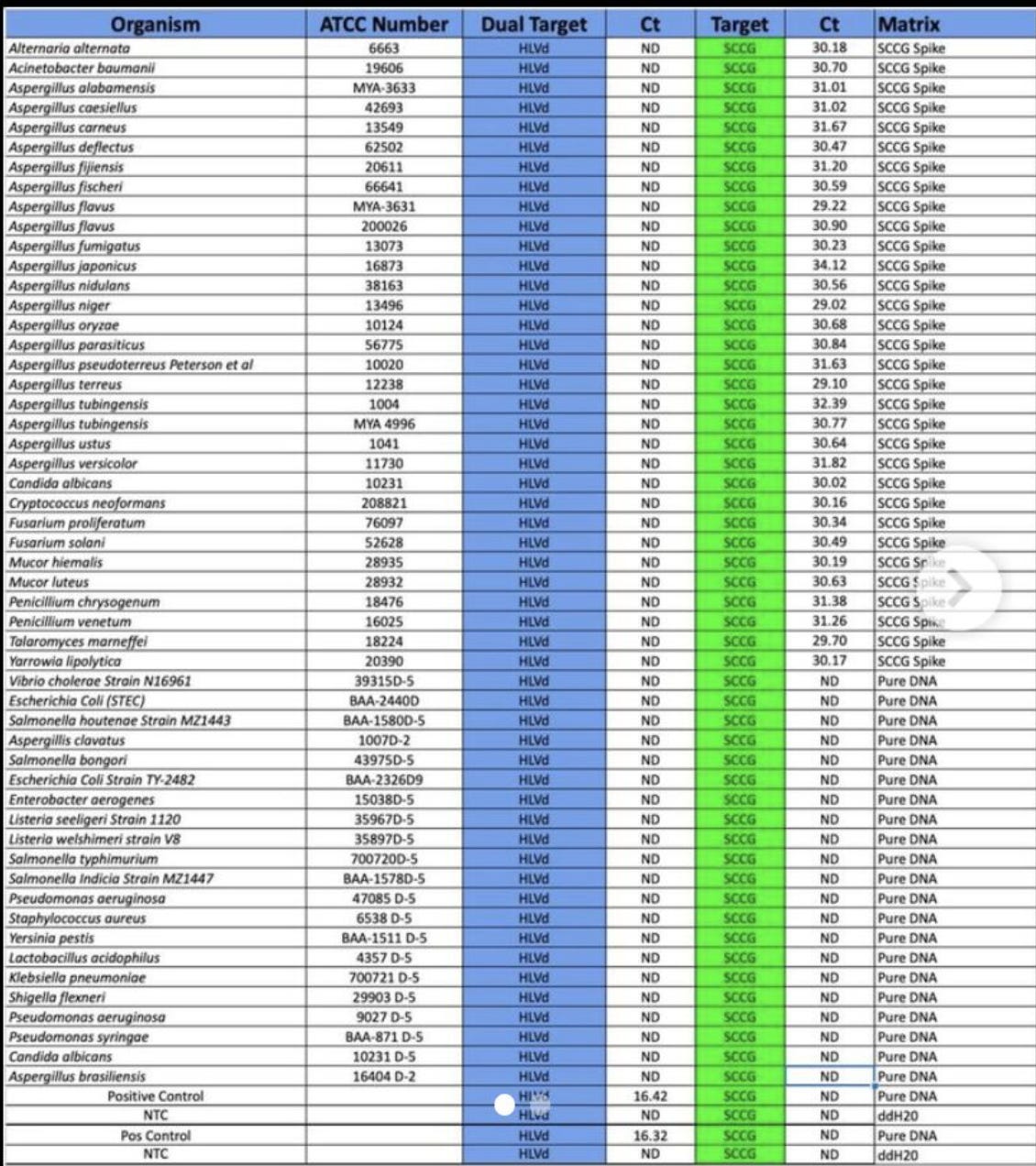 The inclusion analysis (organisms you should hit) gets very tricky when you cant culture the organisms or no biobank has it yet. So novel pathogens like SARs-CoV-2 had to resort to synthesizing a DNA proxy to test the assays on. Many in the “Virus doesn’t exist” camp like to call this cheating as you didn’t ‘isolate’ the virus but this is a fallacious argument given synthesized DNA/RNA is the most purified form of the virus you can make. Even more pure than a protein coated mRNA and simple transfection of these nucleic acids have been proven to be replication competent.
