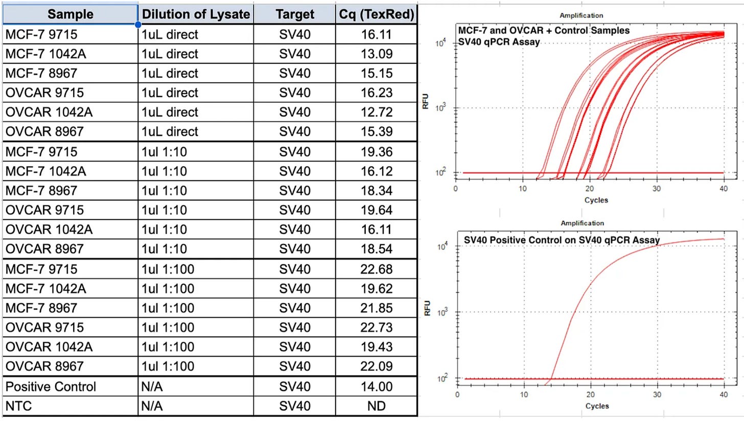 You can see IF1042A clocking in at a CT of 12.72 with SV40. This is 4-5 CTs (2^5 = 32 fold) more DNA than other vaccines tested to date. These are vaccines that Ulrike Kaemmerer is applying to cancer lines. The readings above are before the application to the cell lines listed in their names so they are direct readings from the vaccine vials. She then passages them and we track the vaccine CTs scores with each passage and whole genome sequence interesting events.