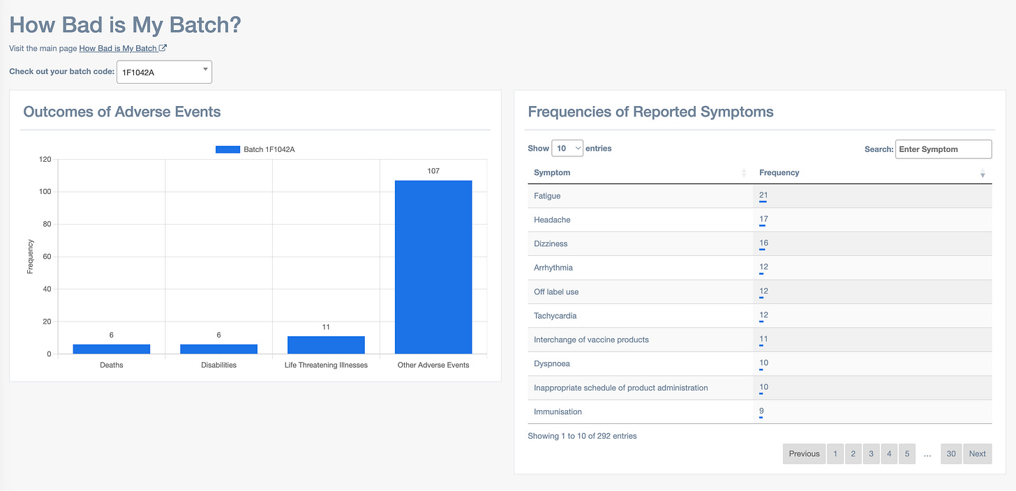 One lot that stood out was BioNtech 1F1042A. This had the lowest CT score ever recorded on a lot and currently holds the most contaminated record.
