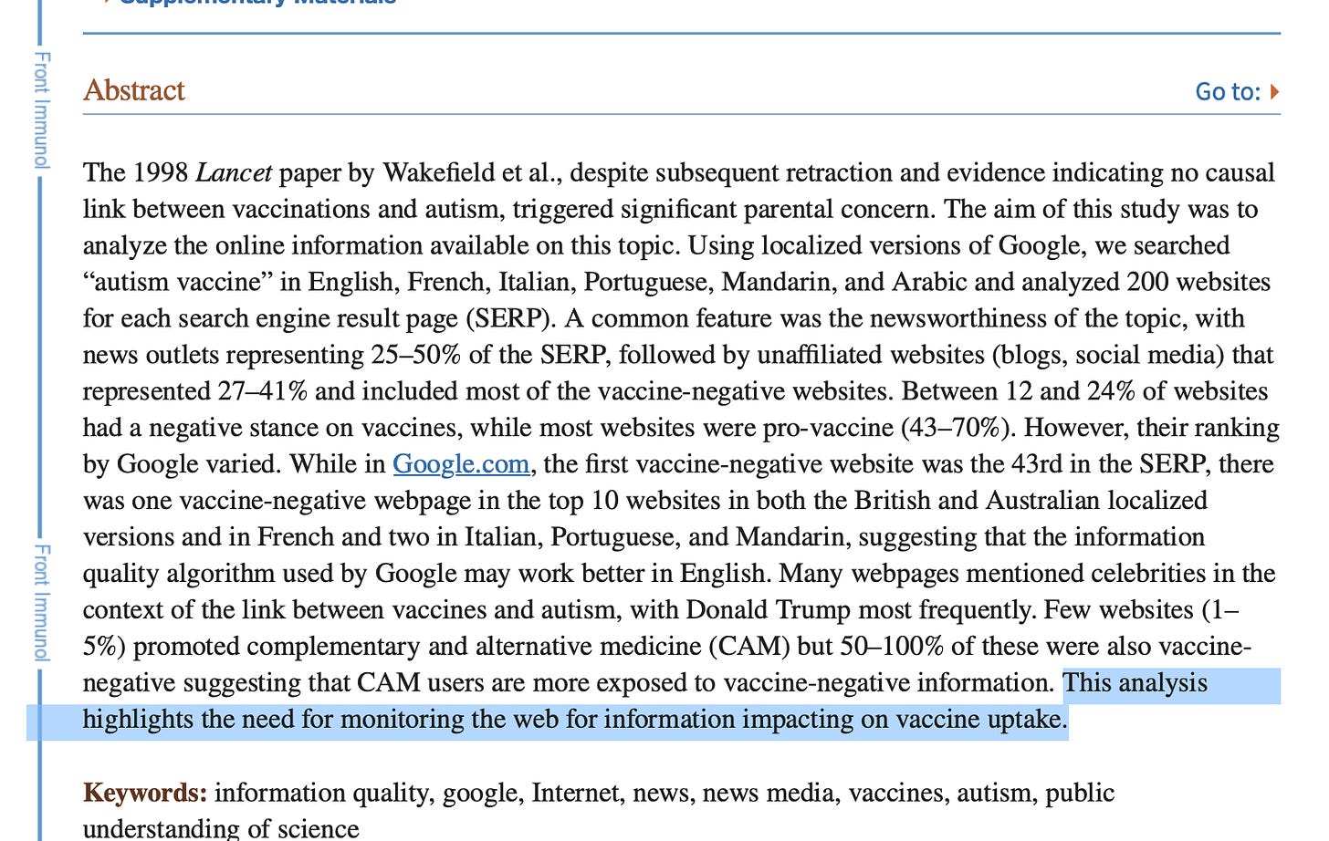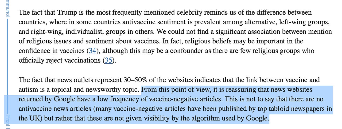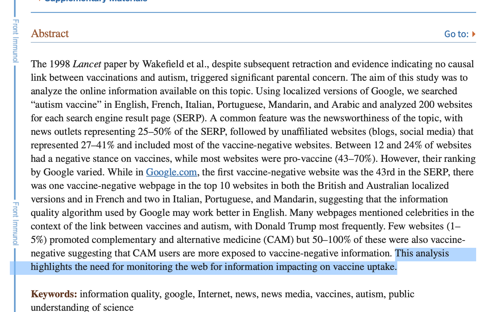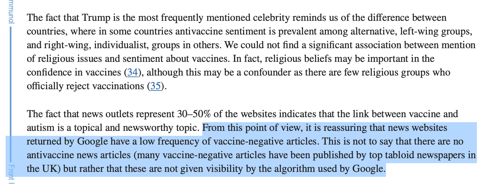 You see, he doesn’t trust people to make their own decisions and has a paper that advocates for more internet surveillance to better manage anti vax web sites and google ranking of approved content.