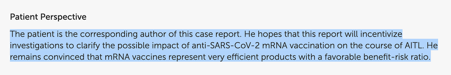 The patient isn’t just a throw on author. He is the corresponding author and doesn’t regret his decision nor wants to discourage any vax hesitancy?