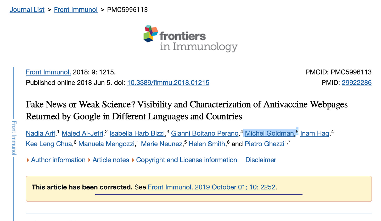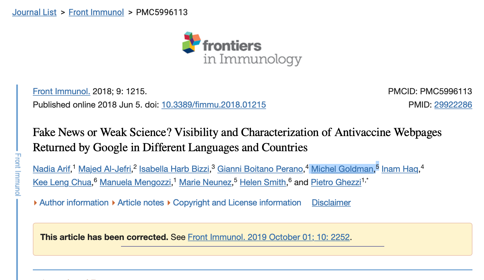 Michel has been publishing papers that study anti-vaxers like they are denigrated lab rats.