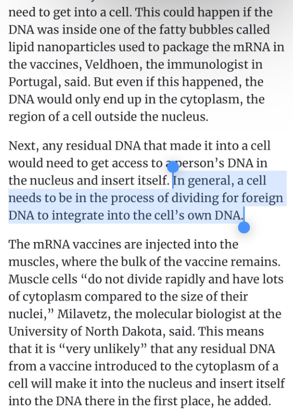 Next up is Veldhoen who is completely clueless about the nuclear targeting sequence in SV40 (Dean et al) while simultaneously having his head in the sand on the biodistribution of these LNPs hitting immune privileged stem cells, oocytes and many tissues outside of the muscle, including, blood, heart, breast milk etc.