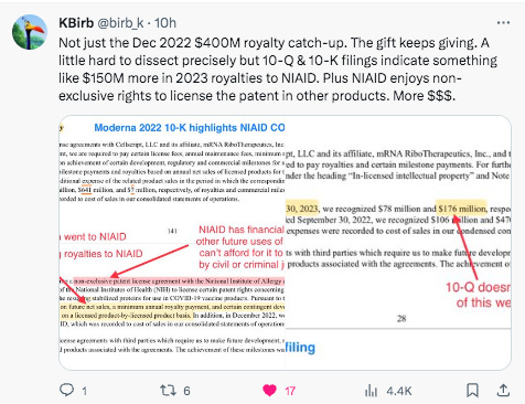 Now that the NIH has $550M in Royalties for these vaccines, do any of Kate Pfizer Yandalls experts have NIH funding?