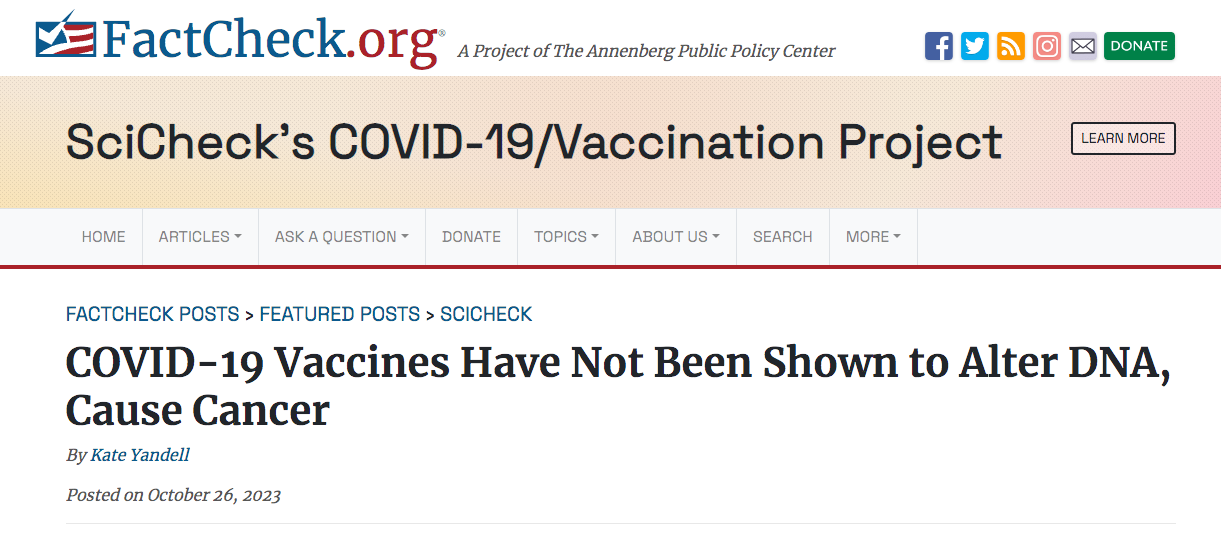 3)The experts they rely on have funding from NIH/NIAID which has at least $550M in Moderna Royalty. Kate Yandall/FactCheck.org never discloses this conflict of interest while they libel and slander any voice raising concerns over the SV40 contamination in liability free mandated injections.