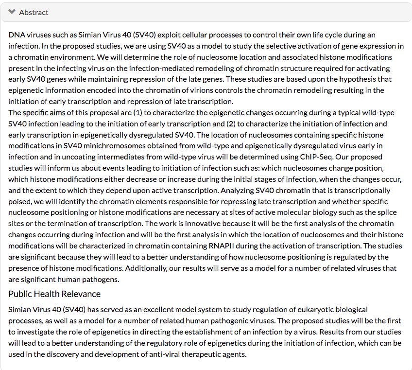 Looks like he’s mutating SV40. Can’t let the public stir about the risk of a virus he’s performing GOF on. Well, this was mutagenesis decades ago but he currently has SV40 grants from Fauci’s NIAID agency. Does Fact Check.org think they can be the arbiter of science when overt conflicts of interest like this are never mentioned?