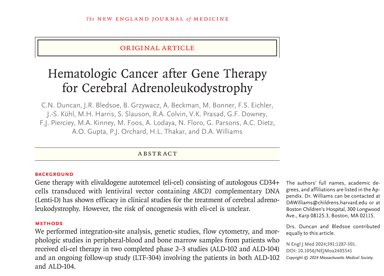 - **Stable Integration**: The integration of the corrected ABCD1 gene into the host genome allows for long-term expression and correction of the underlying defect.